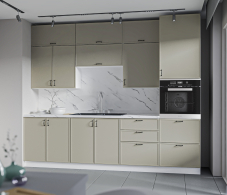 Функциональность: Модульная система позволяет легко адаптировать кухню под ваши нужды. Вы можете комбинировать различные элементы, создавая уникальную конфигурацию, которая идеально впишется в ваше пространство.