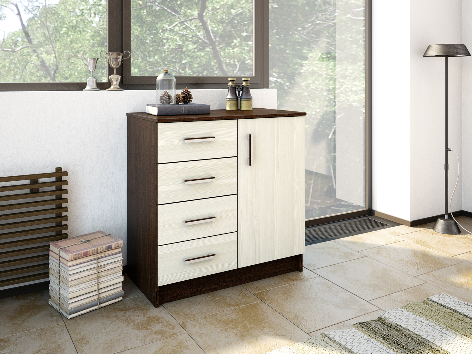 Комбинированное, С полками, с ящиками, Со штангой