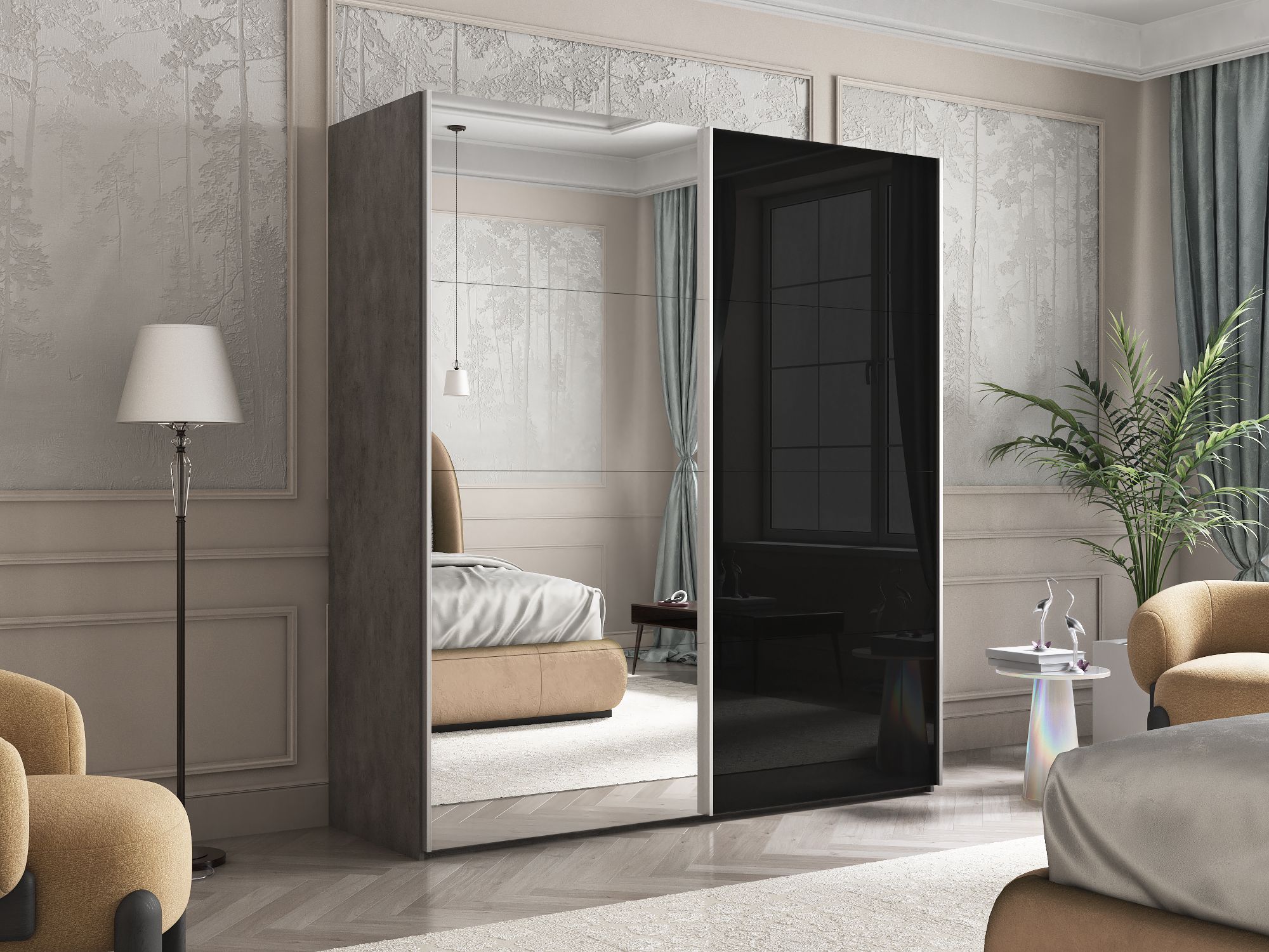 Отзывы о Столплит Шкаф Эста дуо Стекло черное/зеркало 2400 х 1600 х 660 Бетон серый