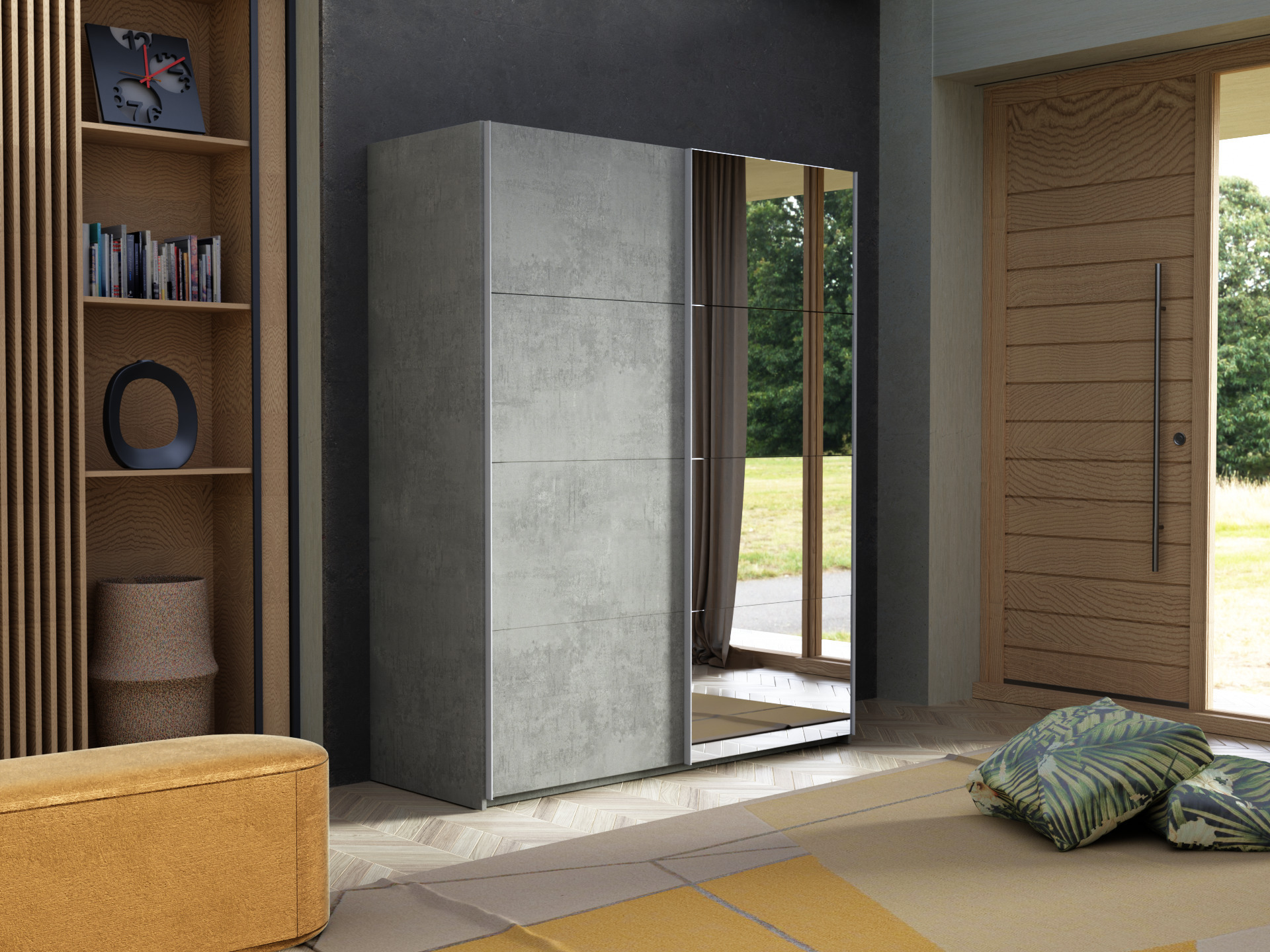 Отзывы о Столплит Шкаф-купе Эста ДСП+Зеркало 160х66х240 Бетон серый