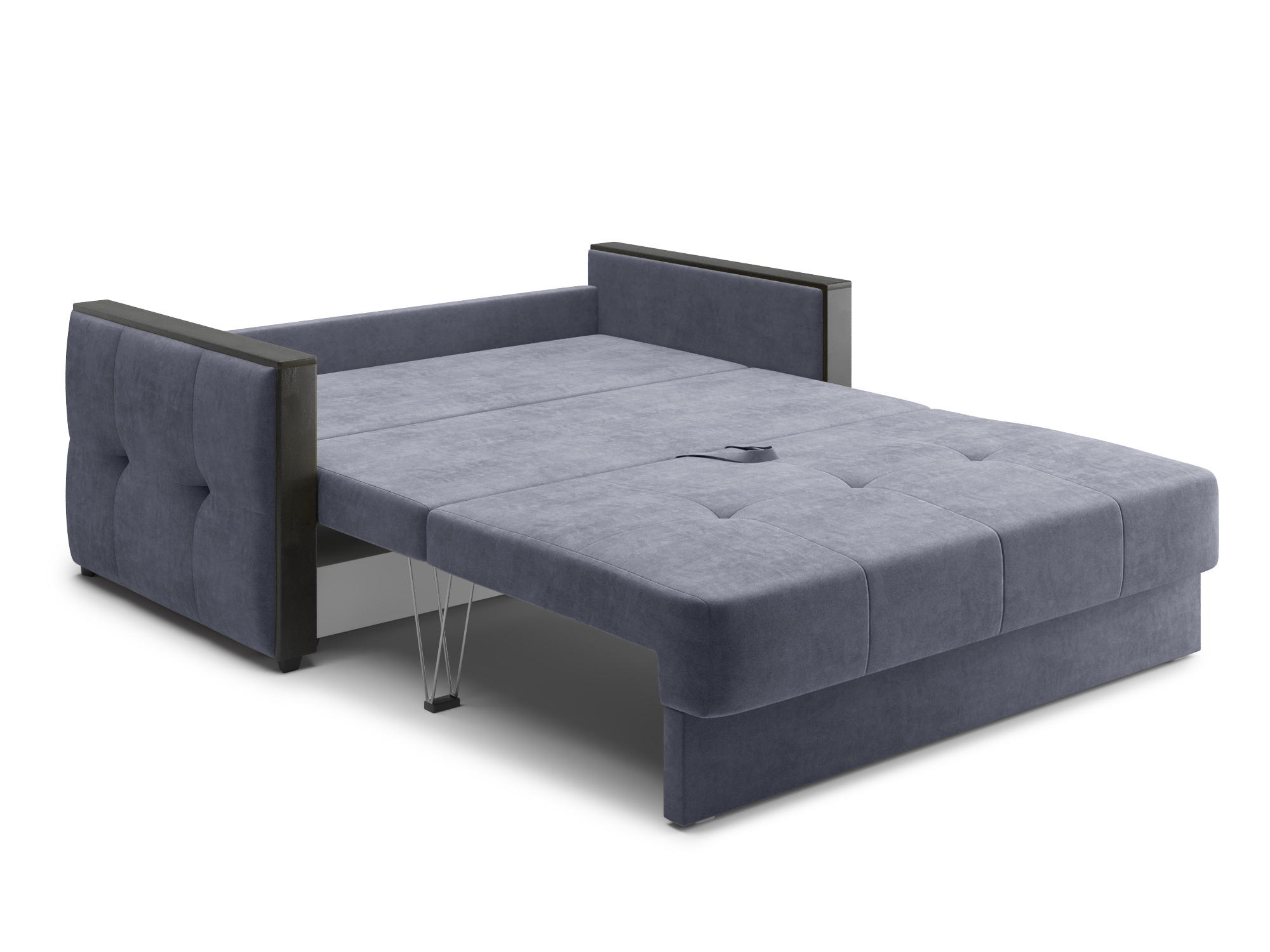 - Механизм раскладки трёхсекционная еврокнижка. В отличие от еврокнижки, спальное место у такого дивана образуется поперёк, а не вдоль сидячего места и состоит из трёх частей. Благодаря такой конструкции габариты дивана в ширину могут быть значительно меньше, чем у еврокнижки, что актуально при планировании расстановки мебели в зависимости от размеров помещения. Под сиденьем дивана находится короб для хранения вещей и постельных принадлежностей.