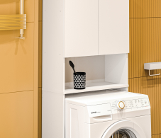 Этот стеллаж оснащен двумя закрытыми и одной открытой полкой, что обеспечивает дополнительное место для хранения в ограниченном пространстве. Закрытые полки позволяют скрыть вещи и уменьшить визуальный шум, в то время как на открытой полке можно разместить декоративные элементы или часто используемые вещи.