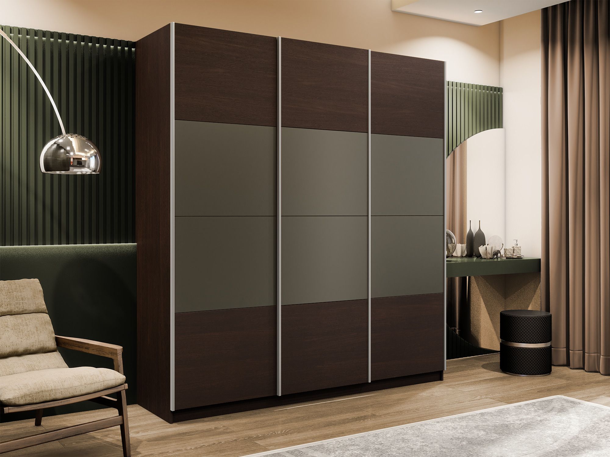 Шкаф-купе Эста 3-х дверный ДСП/Стекла хаки/Доводчик 300х66х240 (Венге мали) Код I0000408496
