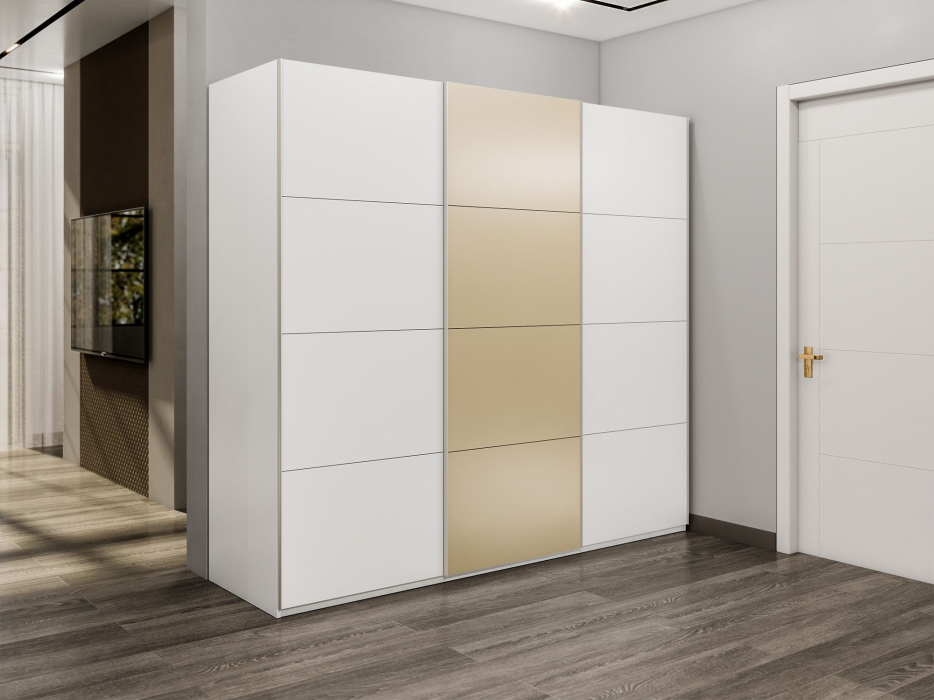 Шкаф-купе Эста 3-х дверный ДСП/Стекла фисташка/Доводчик 300х66х240 (Белый) Код I0000408563