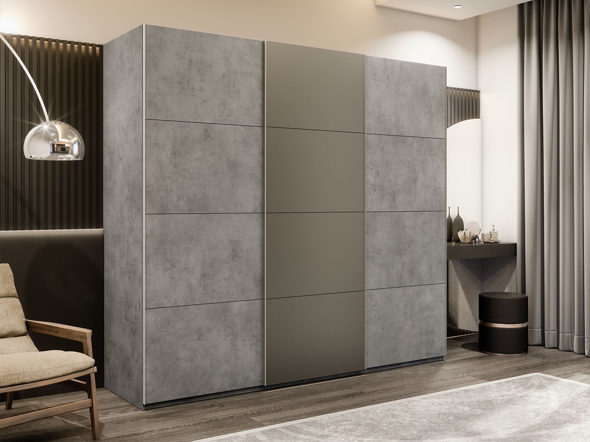 Отзывы о Столплит Шкаф-купе Эста 3-х дверный ДСП/Стекла хаки/Доводчик 300х66х240 Бетон