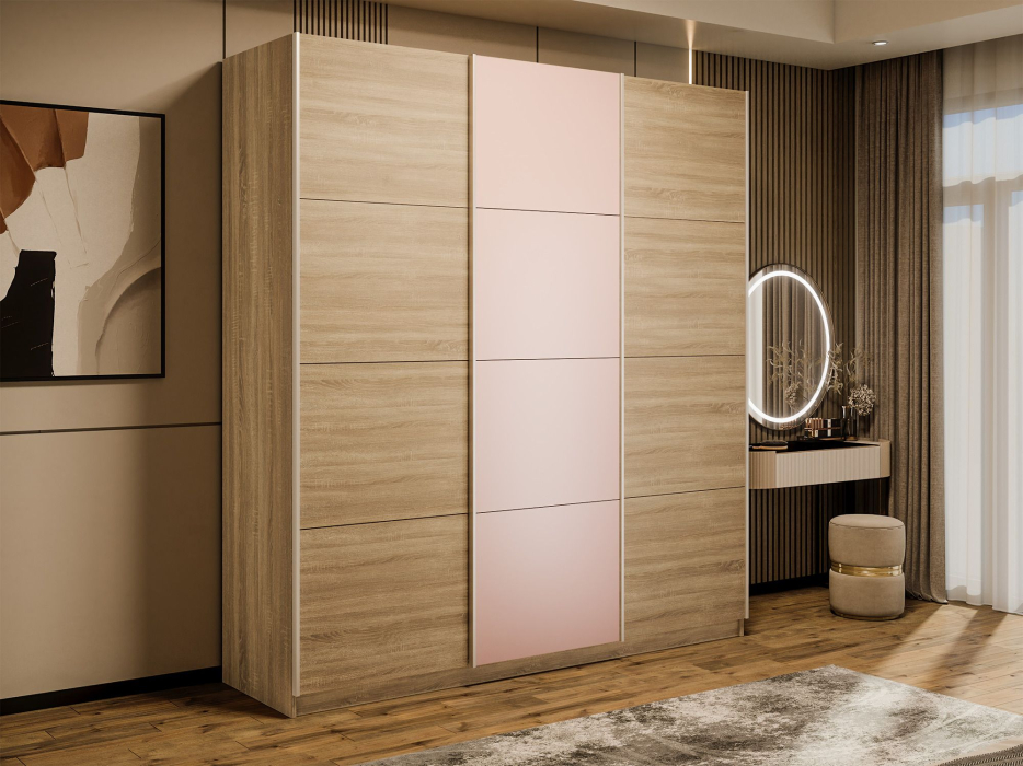 Шкаф-купе Прайм 3-х дверный Стекла пудра/ДСП/Доводчики 180х57х230 (Дуб сонома) Код I0000409055