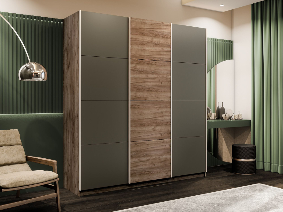Отзывы о Столплит Шкаф-купе Прайм 3-х дверный Стекла хаки/ДСП/Доводчики 180х57х230 Дуб/крафт/табак