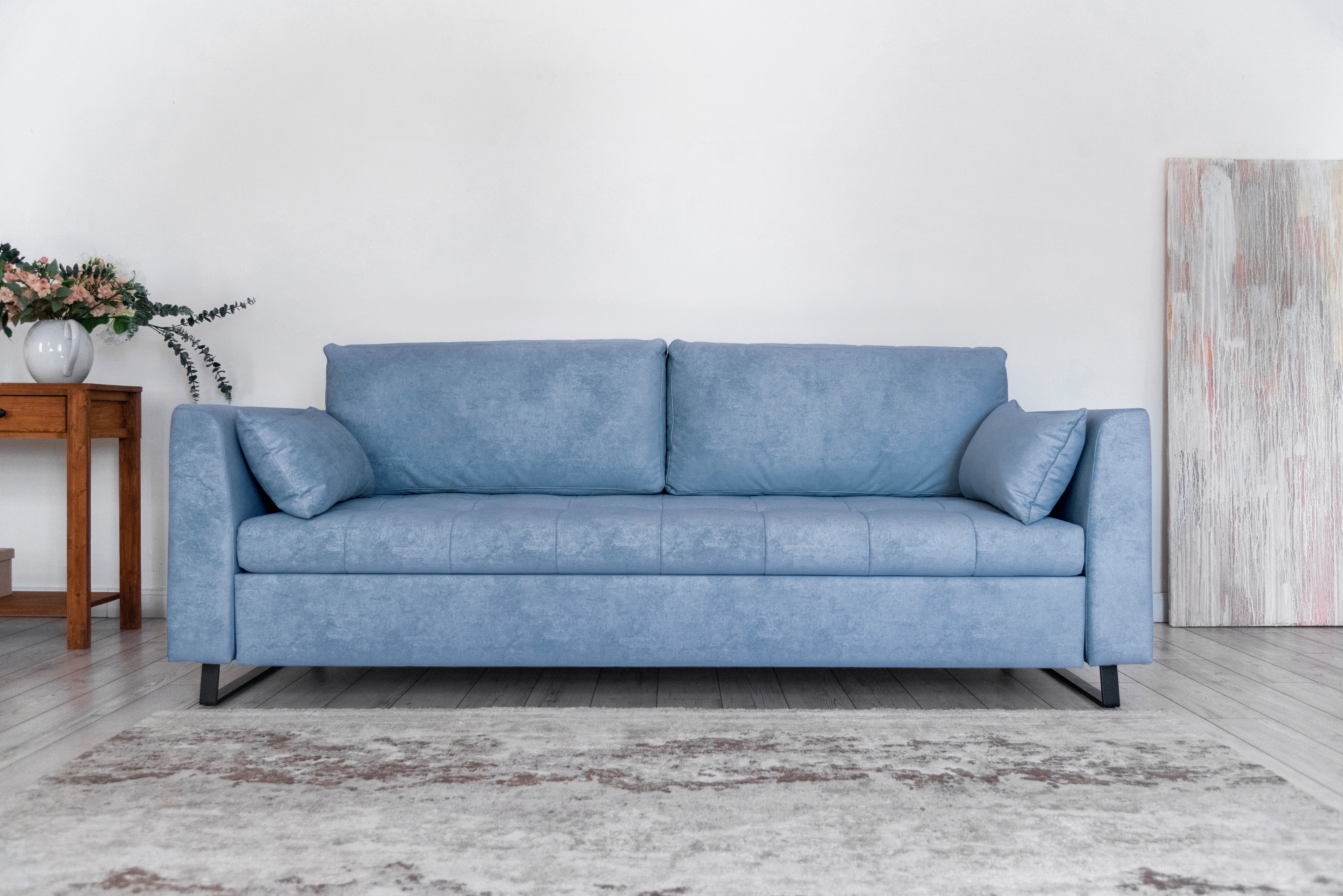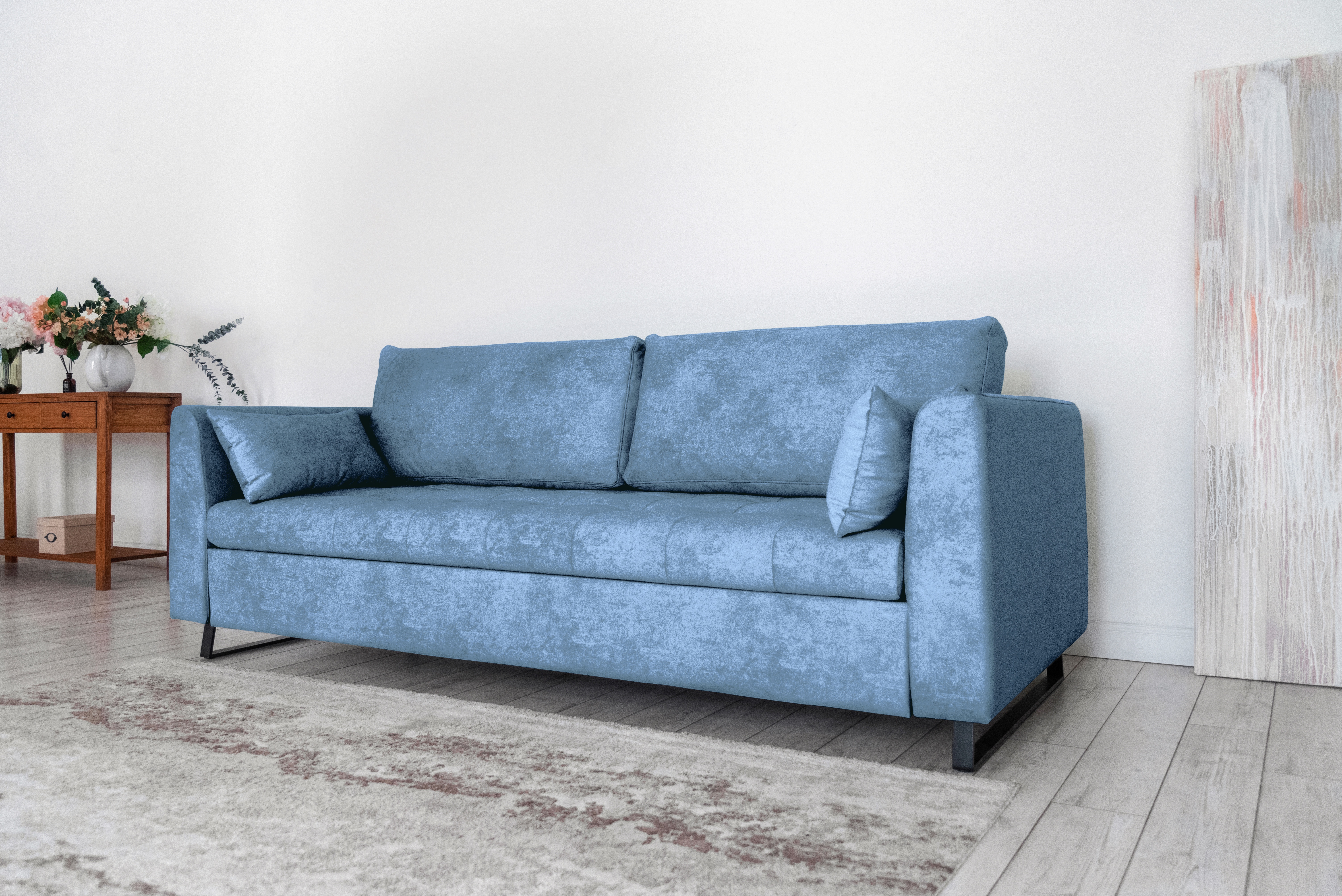Прямой диван Marrit, велюр (светло-синий)