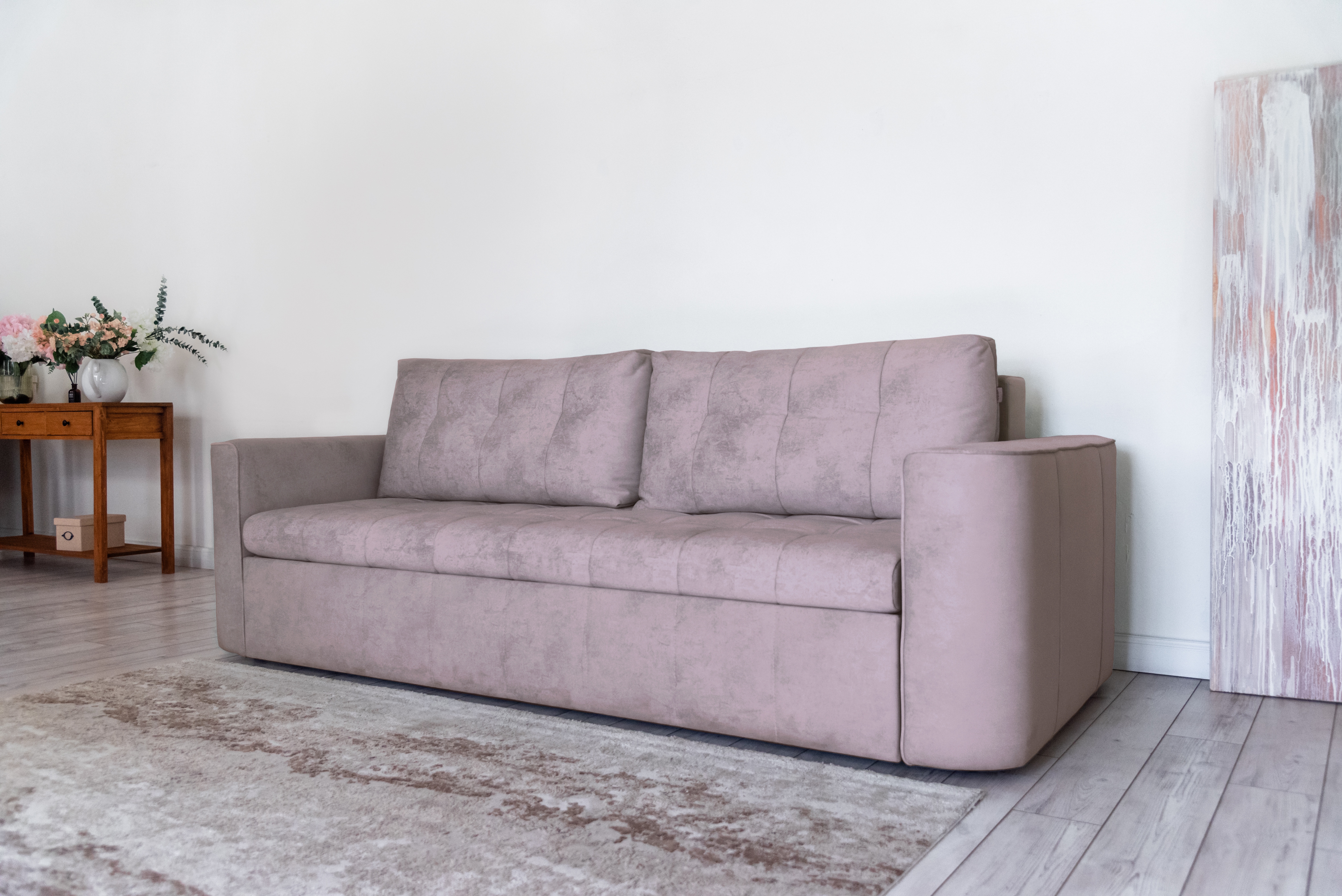 Стильный прямой диван BOSTON создан для тех, кому важна практичность и комфорт: надежный металлокаркас, мягкие ткани и быстрая трансформация в спальное место! Спинка защищает от соприкосновения со стеной во время сна.