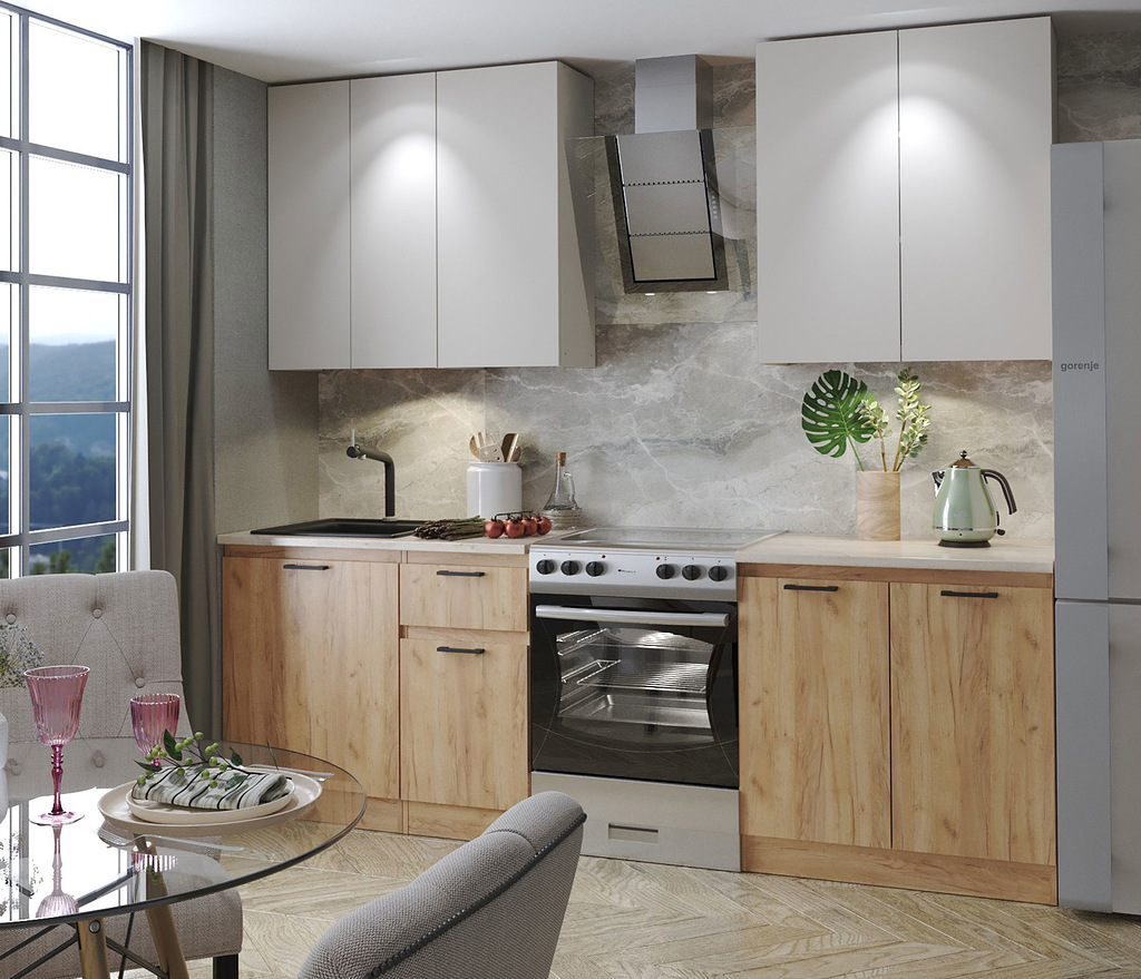 Кухня Ревилья 01, 1800 (Дуб крафт золотой / Кашемир серый)