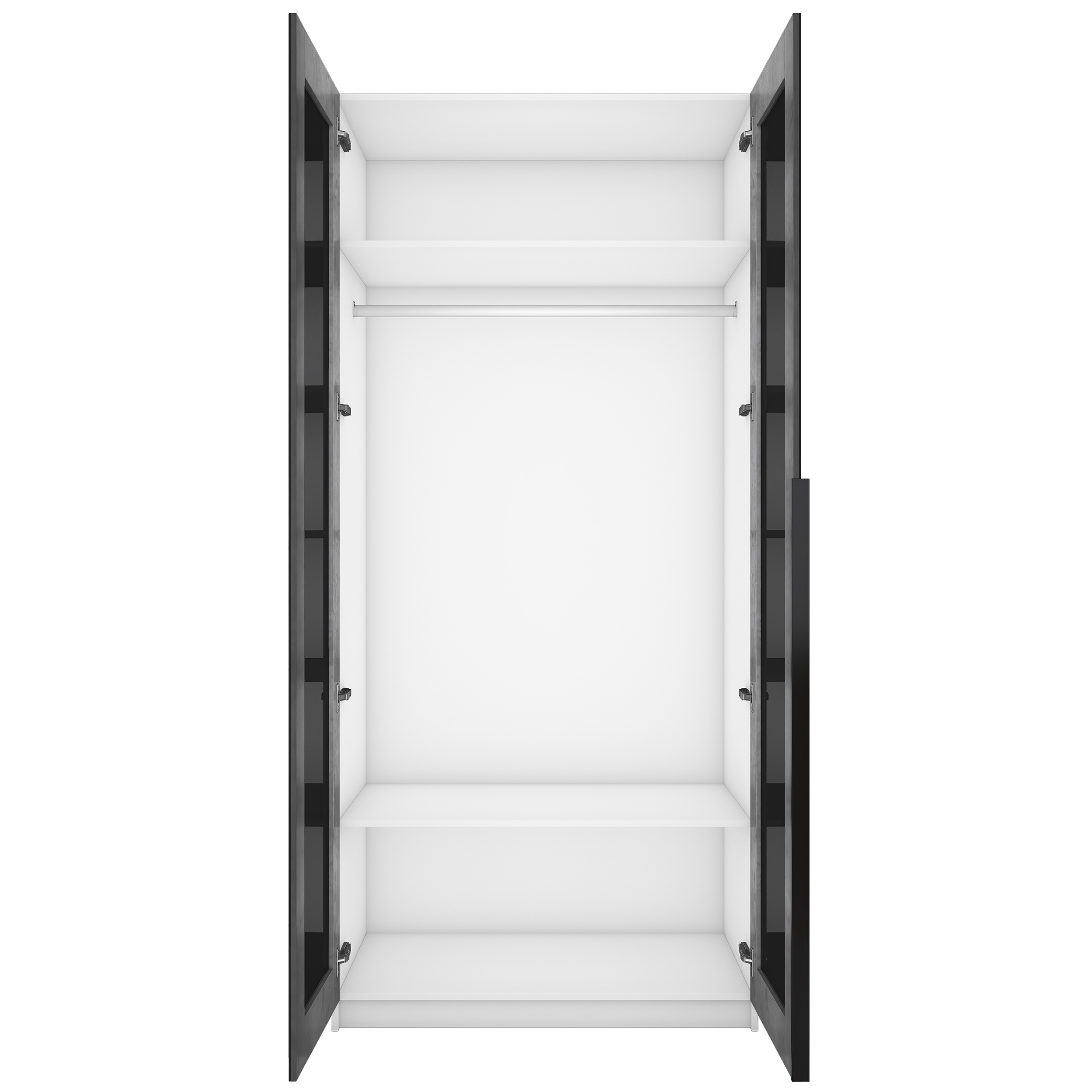 Шкаф распашной Е1 Локер 101x52.5x220 см, с черным стеклом (Белый снег)