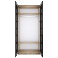 Шкаф распашной Е1 Локер 101x52.5x220 см, с черным стеклом (Дуб сонома)