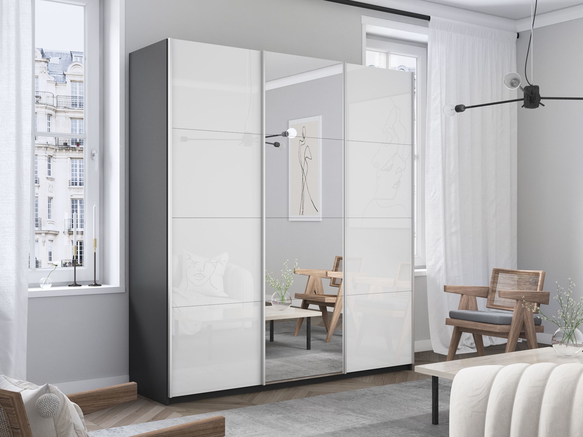Отзывы о Столплит Шкаф-купе Прайм 3-х дверный Стекла белые/Зеркало/Доводчики 180х57х230 Серый диамант