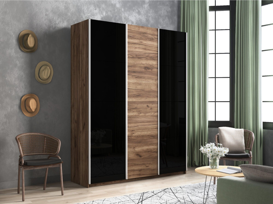 Отзывы о Столплит Шкаф-купе Прайм 3-х дверный Стекла черные/ДСП/Доводчики 180х57х230 Дуб/крафт/табак