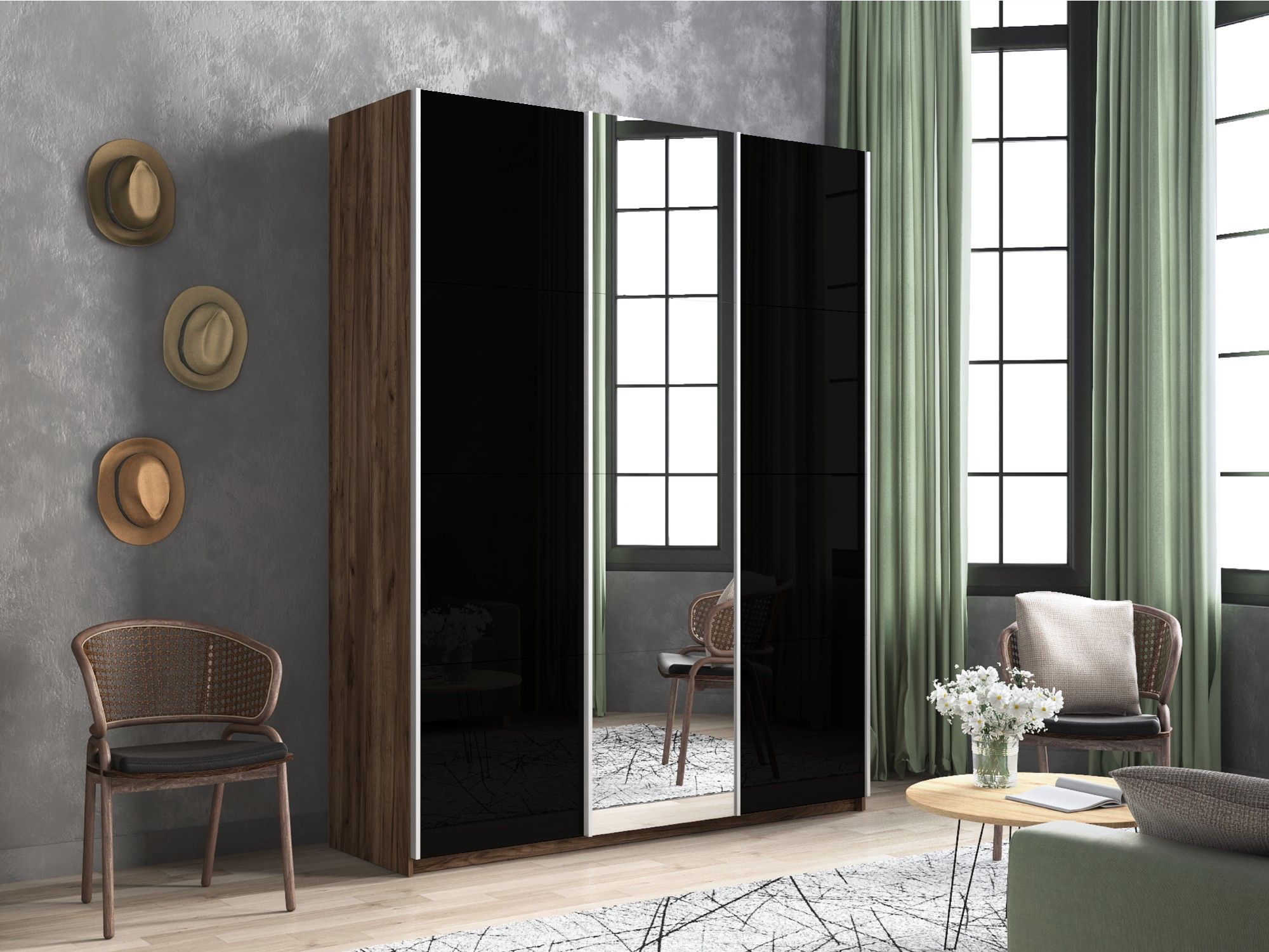 Отзывы о Столплит Шкаф-купе Прайм 3-х дверный Стекла черные/Зеркало/Доводчики 180х57х230 Дуб/крафт/табак