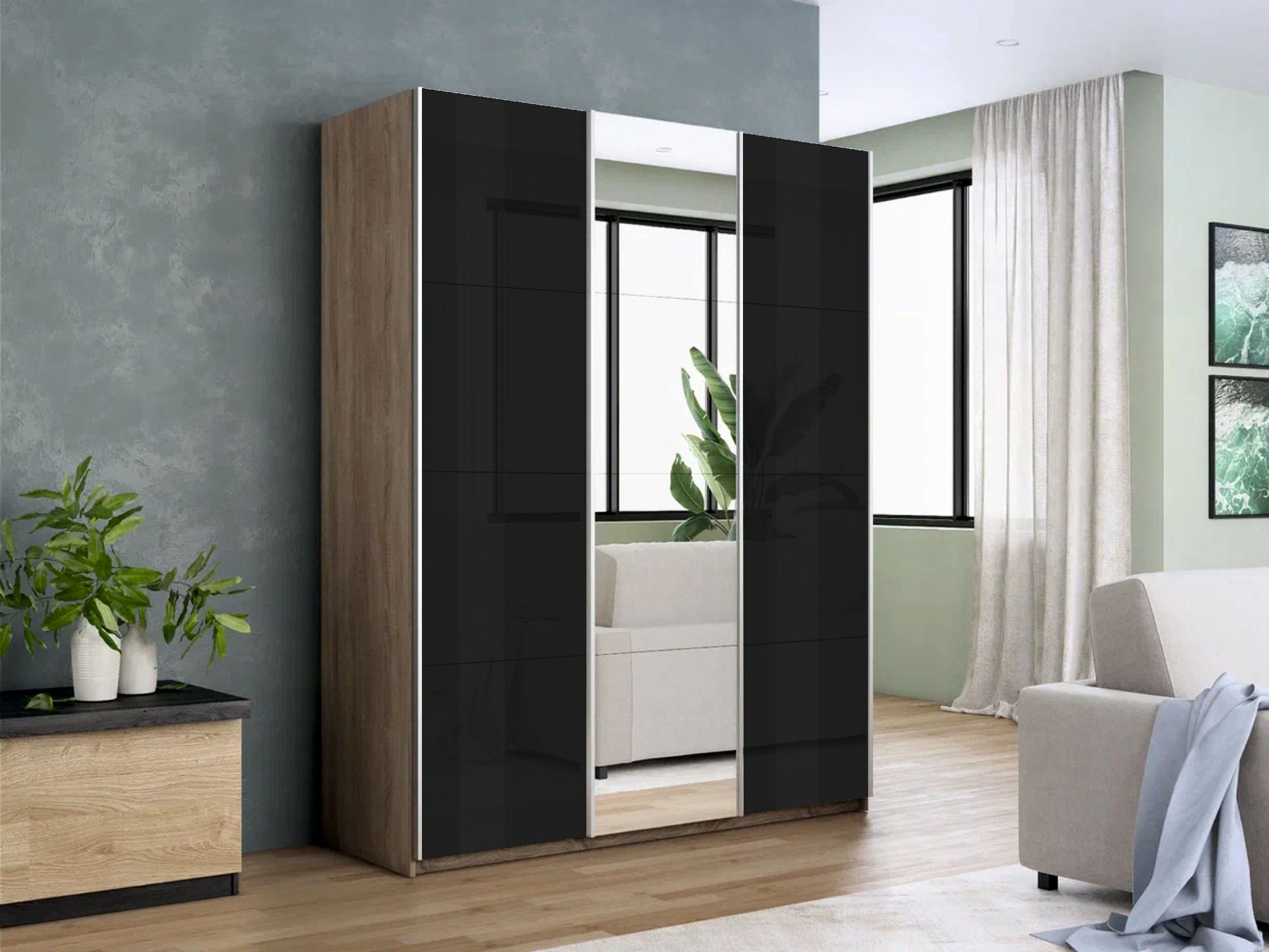 Отзывы о Столплит Шкаф-купе Прайм 3-х дверный Стекла черные/Зеркало/Доводчики 210х57х230 Дуб сонома