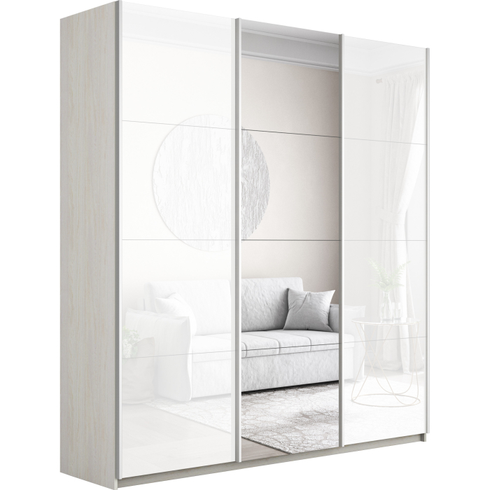 Отзывы о Столплит Шкаф-купе Прайм 3-х дверный Стекла белые/Зеркало/Доводчики 210х57х230 Ясень Анкор светлый