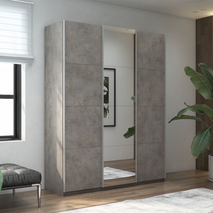 Отзывы о Столплит Шкаф-купе Широкий Прайм 3-х дверный ДСП/Зеркало/Доводчики 240х57х230 бетон