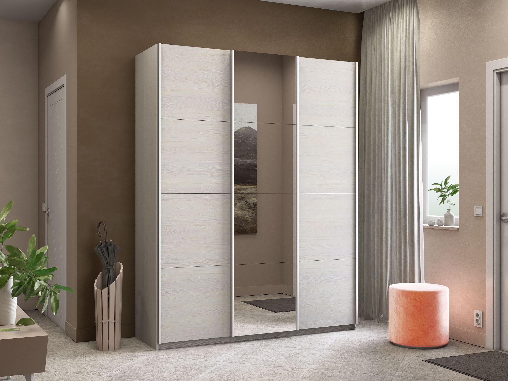 Отзывы о Столплит Шкаф-купе Широкий Прайм 3-х дверный ДСП/Зеркало/Доводчики 240х57х230 Ясень Анкор светлый