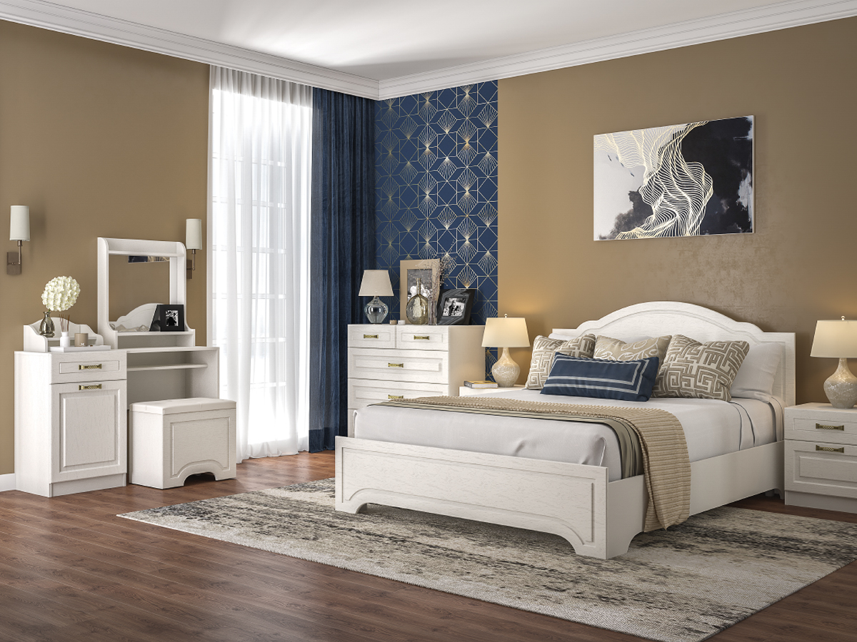 Образует единый стиль оформления помещения в сочетании с другой мебелью для спальни коллекции "Ливерпуль".
