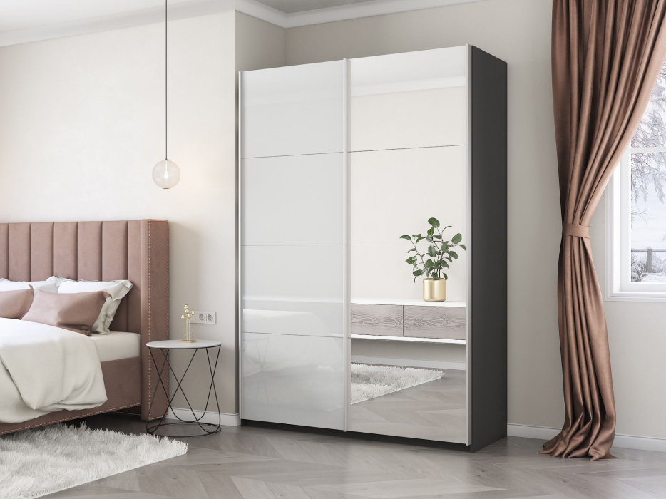 Отзывы о Столплит Шкаф-купе Прайм 2х дверный Зеркало/Белый Глянец 120х57х230 Темно-серый
