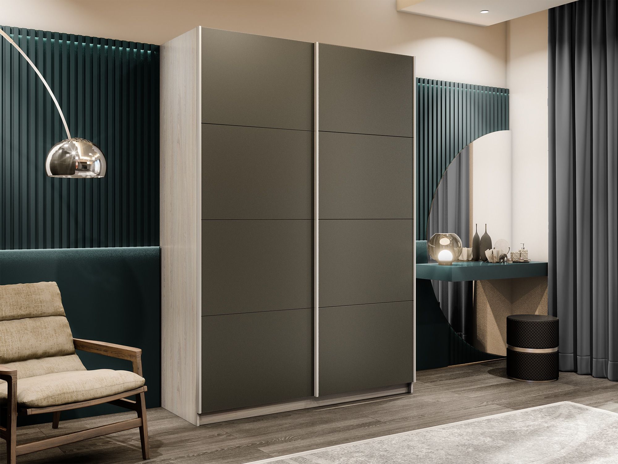 Отзывы о Столплит Шкаф-купе Прайм 2-х дверный Стекла хаки/Доводчики 160х57х230 Ясень Анкор светлый