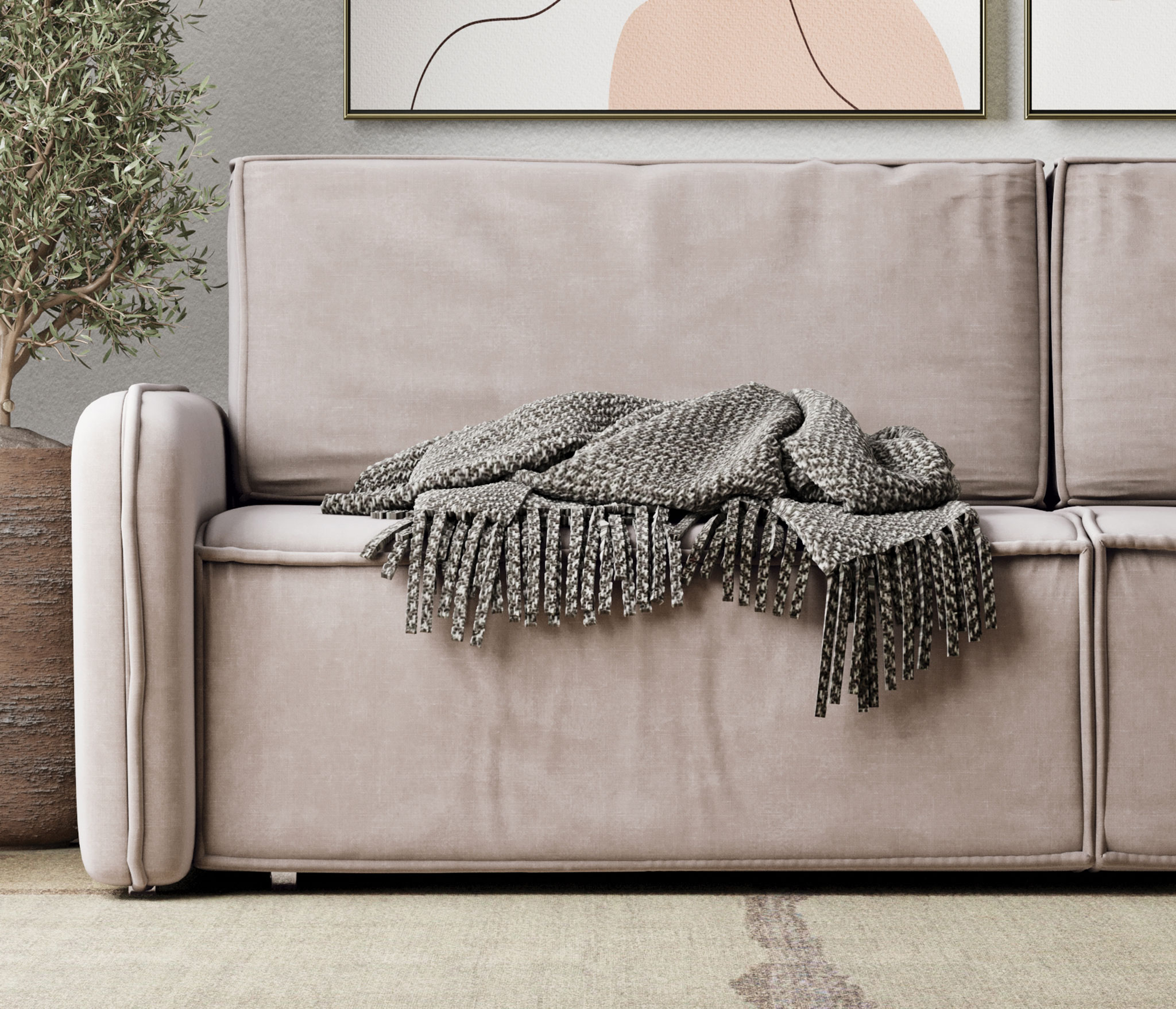 • Качественная обивка: Диван обит мягким велюром, который приятен на ощупь и долго сохраняет свой внешний вид.