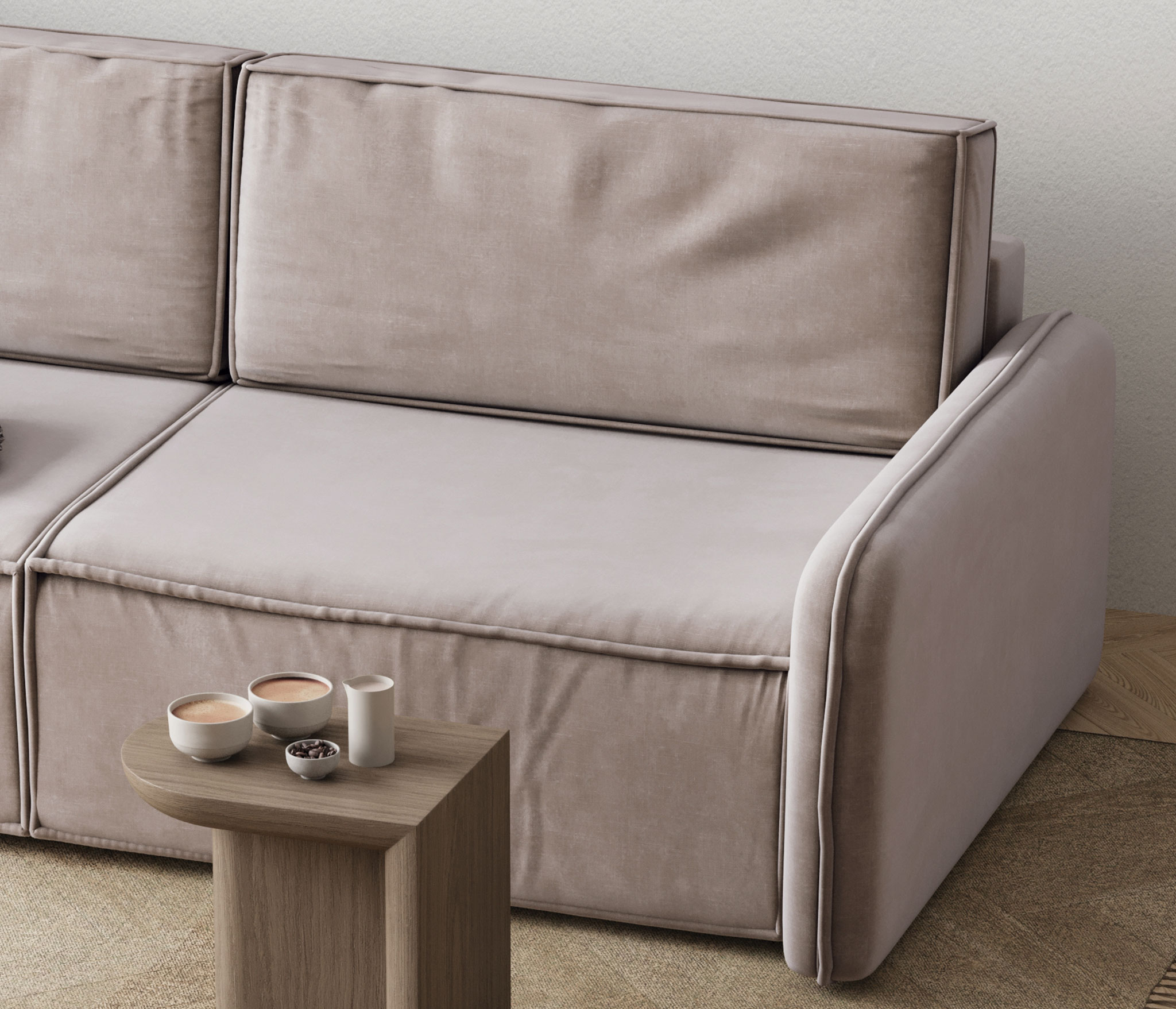 • Универсальность: Угловая конфигурация позволяет экономить пространство и создавать уютную зону отдыха.