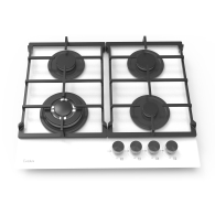 Варочная панель газовая, 60 см, 4 конфорки: экономичная конфорка (1 кВт), 2 стандартных конфорки (2х1,75 кВт), Вок конфорка (3,3 кВт), газ-контроль, электроподжиг, черное высокопрочное закаленное стекло, чугунные решетки, поворотные переключатели, комплект форсунок-переходников на балонный газ, 600х510х110 мм.