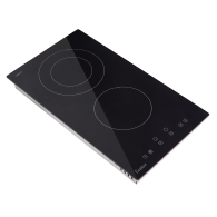 Варочная панель электрическая, стеклокерамика, Hi Light,30 см,2 конфорки,сенсорное управление, 9 уровней мощности,таймер 1-99 мин,блокировка управления, защитное отключение, защита детей,двухконтурная, 3200 Вт, вилка питания, черное стекло ILVA (Италия), 290мм x 520мм x 50мм.