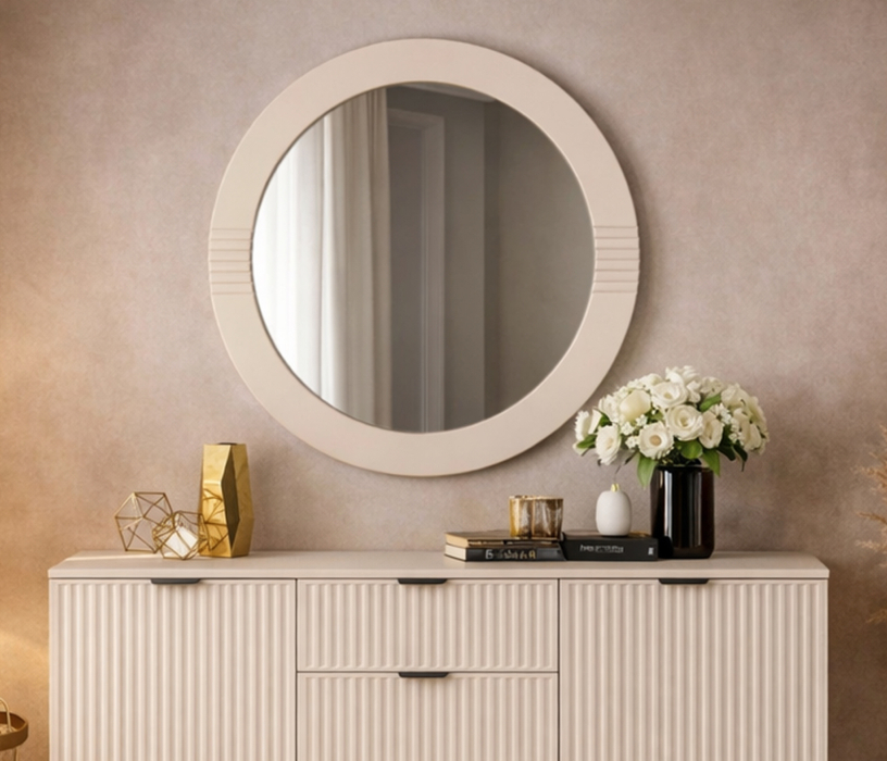 Зеркало Турин — это стильный элемент декора, который станет изюминкой вашего интерьера. Оно имеет круглую форму, что придаёт ему лёгкость и элегантность. Рамка зеркала выполнена из высококачественного МДФ в нежном цвете Кашемир. Этот цвет идеально вписывается в современные интерьерные решения, добавляя нотку утончённости и гармонии. Благодаря своему универсальному дизайну, оно отлично подойдёт как для спальни, так и для гостиной или прихожей.