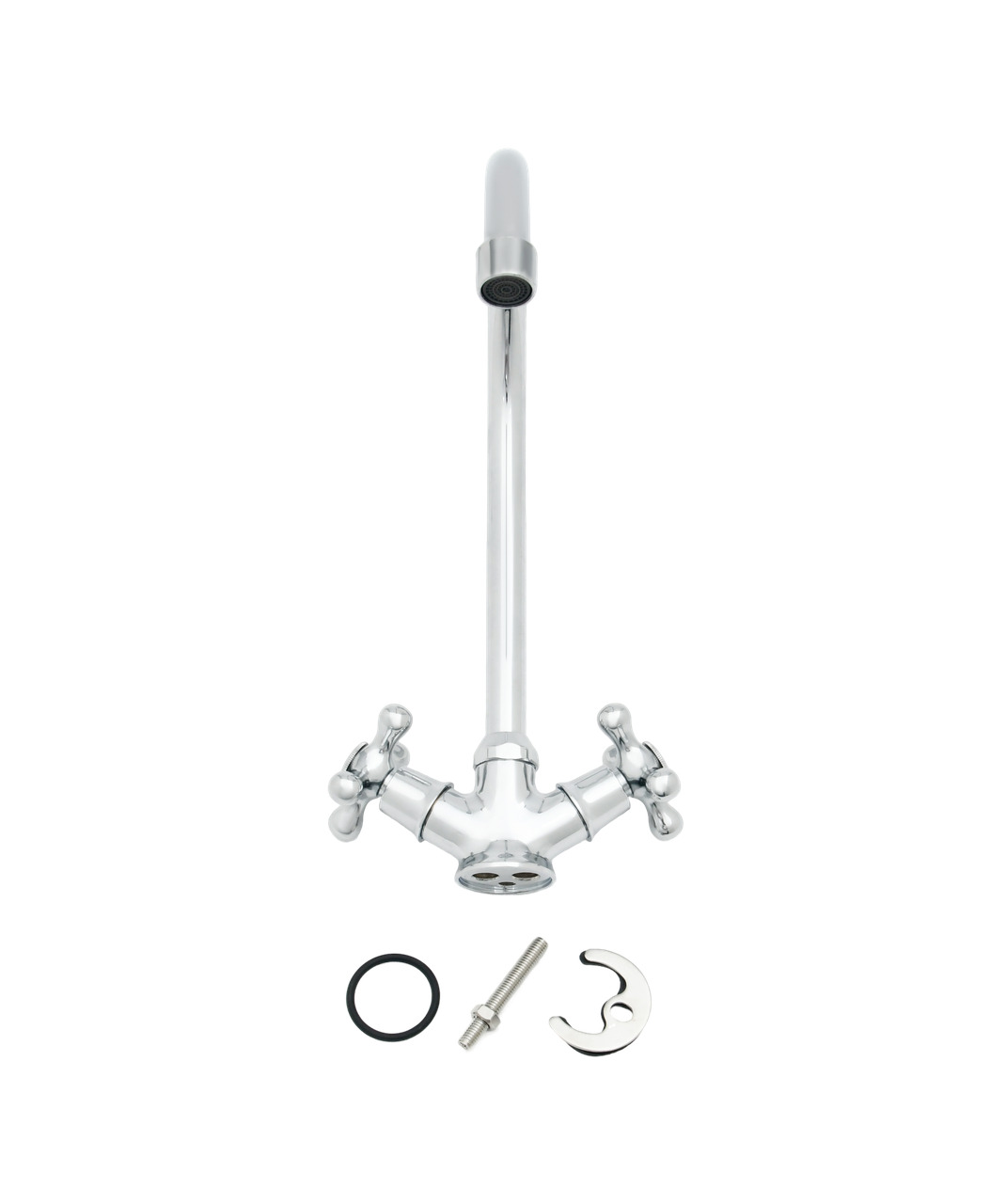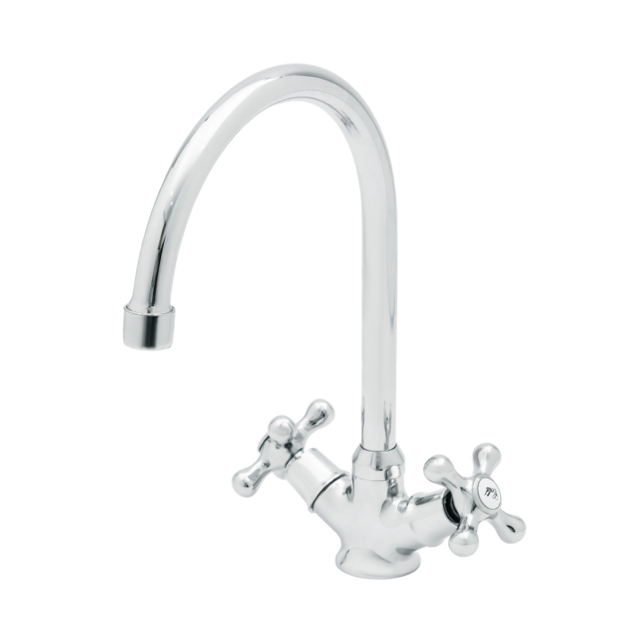 Смеситель для кухни из латуни, с поворотным изливом, двухвентильный. Фирменная картонная упаковка.