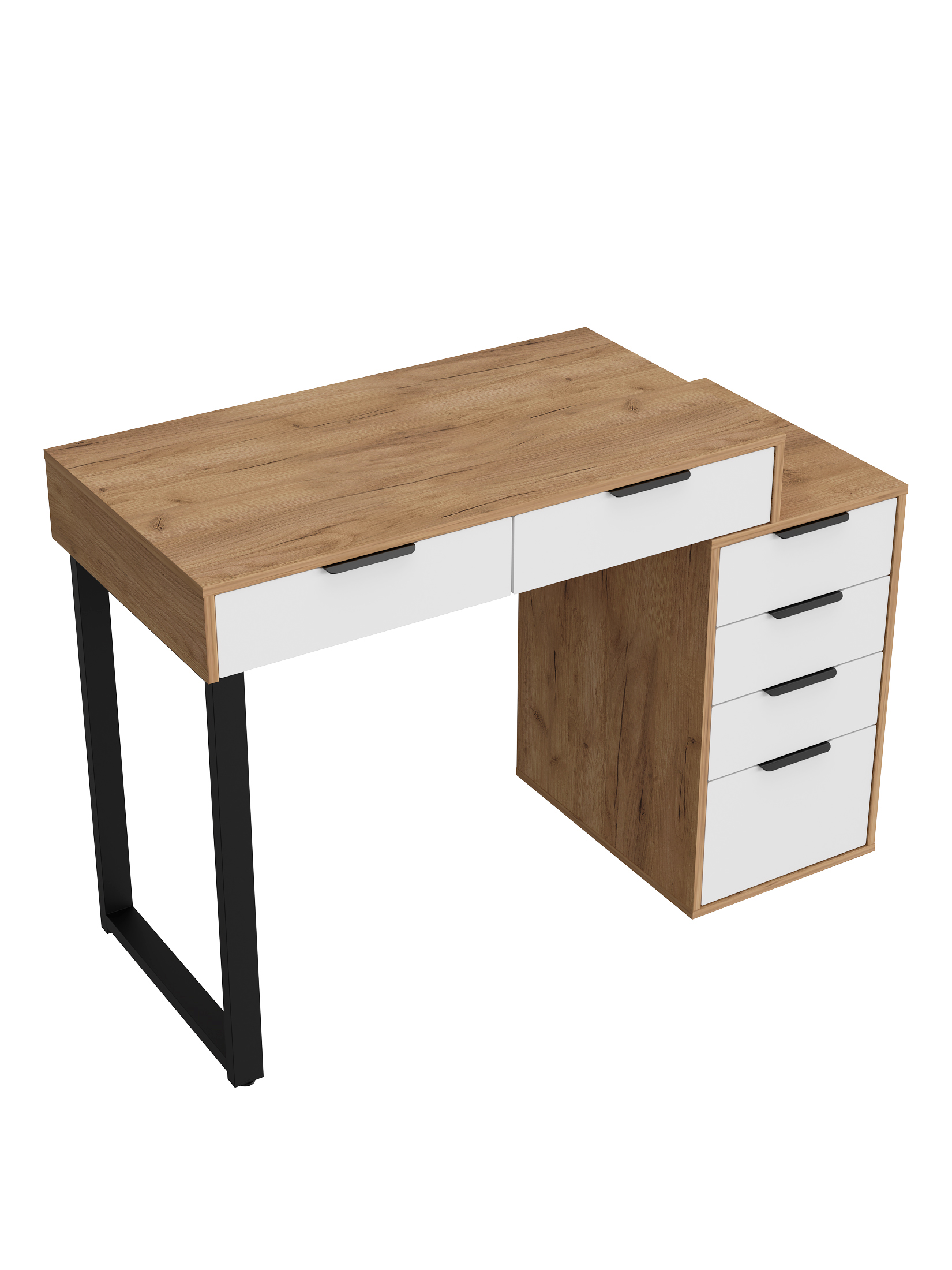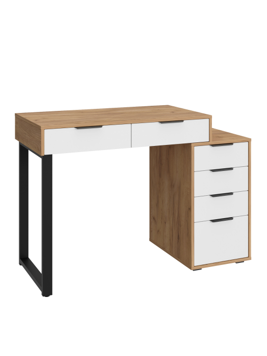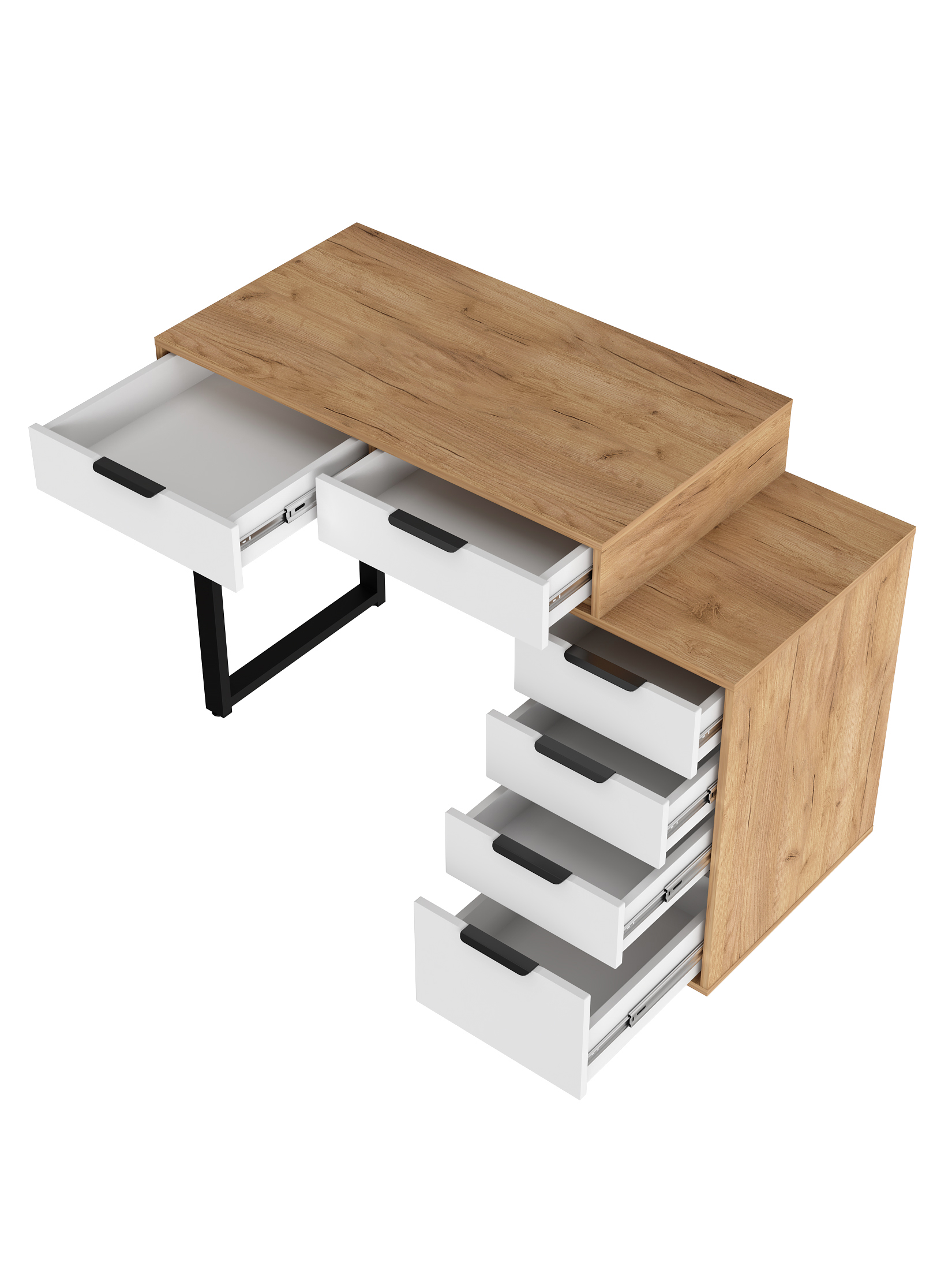 Универсальность: подходит для использования в качестве письменного, компьютерного или маникюрного стола. Рекомендуется высокий стул. Фурнитура: телескопические направляющие полного выдвижения без доводчиков, металлические ручки и опора.