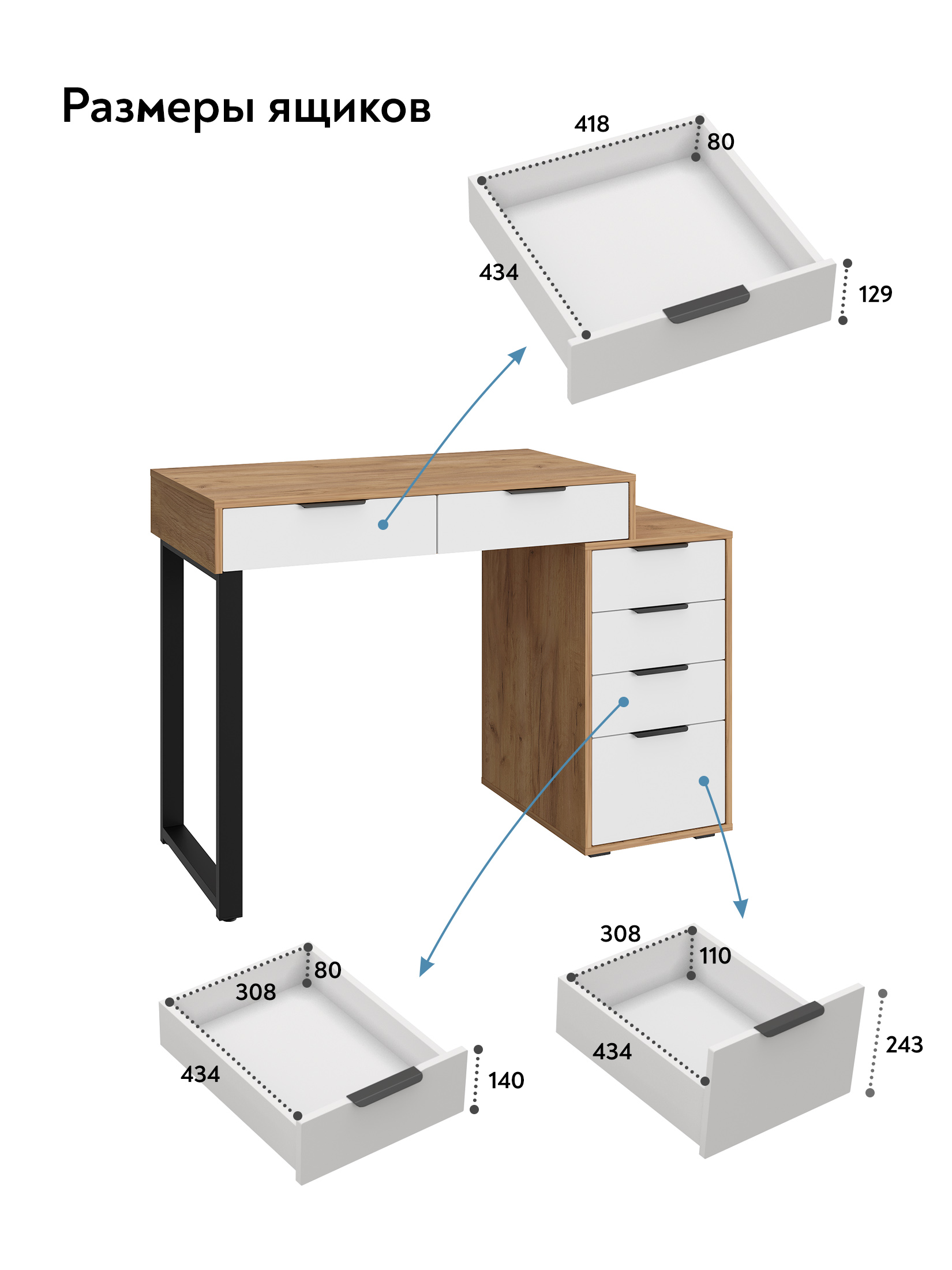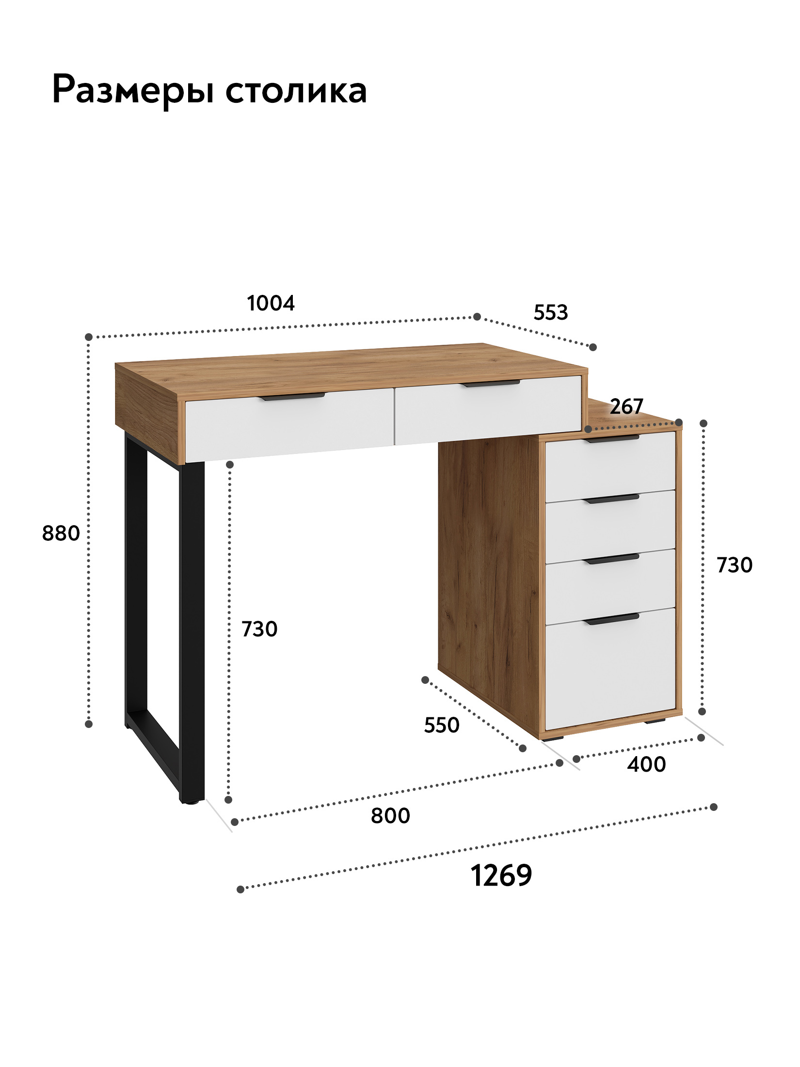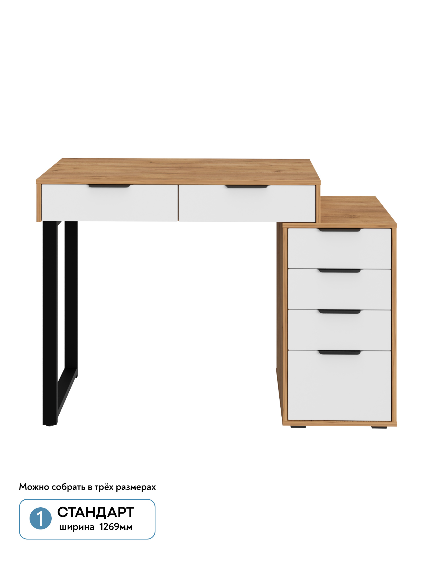 Универсальность: подходит для использования в качестве письменного, компьютерного или маникюрного стола. Рекомендуется высокий стул. Фурнитура: телескопические направляющие полного выдвижения без доводчиков, металлические ручки и опора.
