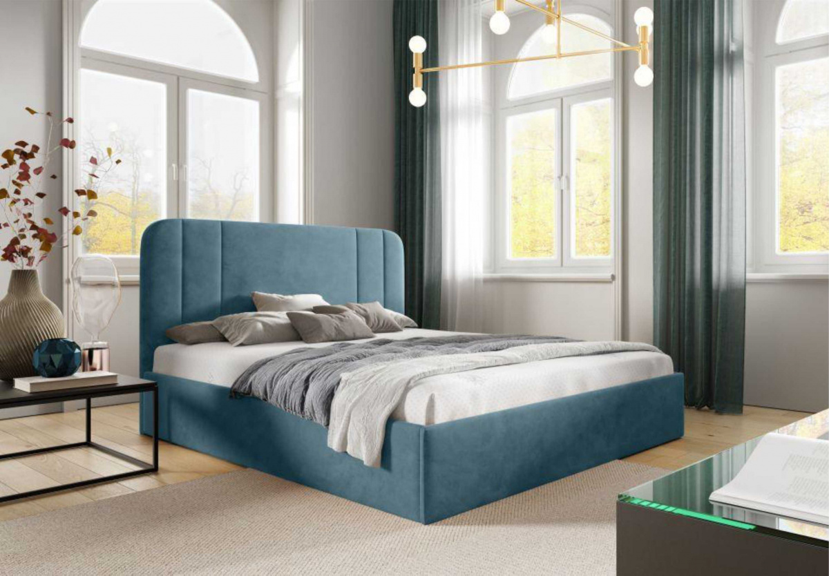 Кровать Терра в базовых тканях, без основания и без подъемного механизма, 160х200 (Велюр голубой) Код I0000456018