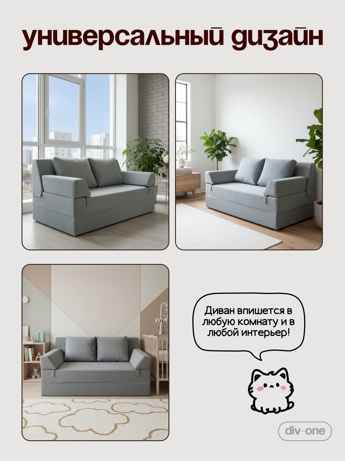 Экологически чистые материалы и продуманный дизайн позволят создать уютную атмосферу в комнате. Удобные съемные подушки обеспечивают дополнительный комфорт во время отдыха, а легкость конструкции позволяет без труда перемещать диван из комнаты в комнату. Книжка подходит не только для квартиры, но и для дачи. Стильный вид впишется в любой интерьер — от лофта до модерна.