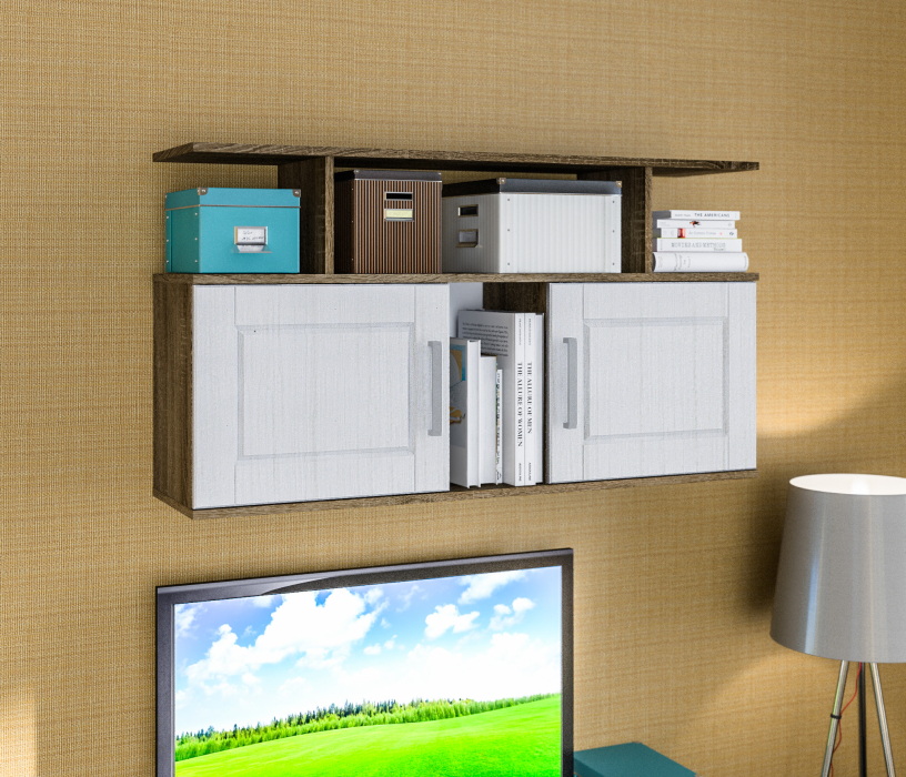 Габаритные размеры – ширина 119 см, высота 65 см и глубина 29 см, далеки от компактных. Полка состоит из нескольких вместительных отделений, два из которых оснащены дверцами.
