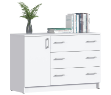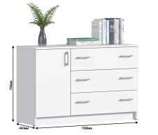 Габаритные размеры комода Терра – ширина 119 см, высота 75 см и глубина 44 см. Под одной столешницей объединены одна тумба и отделение с тремя большими выдвижными ящиками. В тумбе два больших отделения. Ящики оснащены выдвижными механизмами, рассчитанными на длительный срок эксплуатации.Комод Терра выполнен в лаконичном дизайне. Благодаря природному цвету Дуб Сонома, комод Терра смотрится легко и стильно.