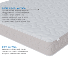 В основе данной модели лежит блок независимых пружин, данный тип пружин гарантирует правильную поддержку позвоночнику спящего, т.к. пружины работают независимо друг от друга, то обратное давление будет оказываться только там где это действительно нужно. Для защиты комфортных слоев матраса используется специальное термоволокно, которе предотвращает истирание слоев во время эксплуатации. Латексированный кокос, используемый в этой модели, в качестве основного комфортного слоя, делает одну из сторон более жесткой по отношению к другой, что дает вариативность и страхует от ошибки при выборе жесткости. Вторая сторона матраса усилена особо прочной и упругой пеной, которая позволит хорошо высыпаться.. Обращаем ваше внимание, что матрас отвечает за правильность положения нижнего и среднего отделов позвоночника, а за шейный- отвечает правильно подобранная ортопедическая подушка. Для увеличения срока эксплуатации матраса рекомендуем приобрести защитный чехол AquaStop.