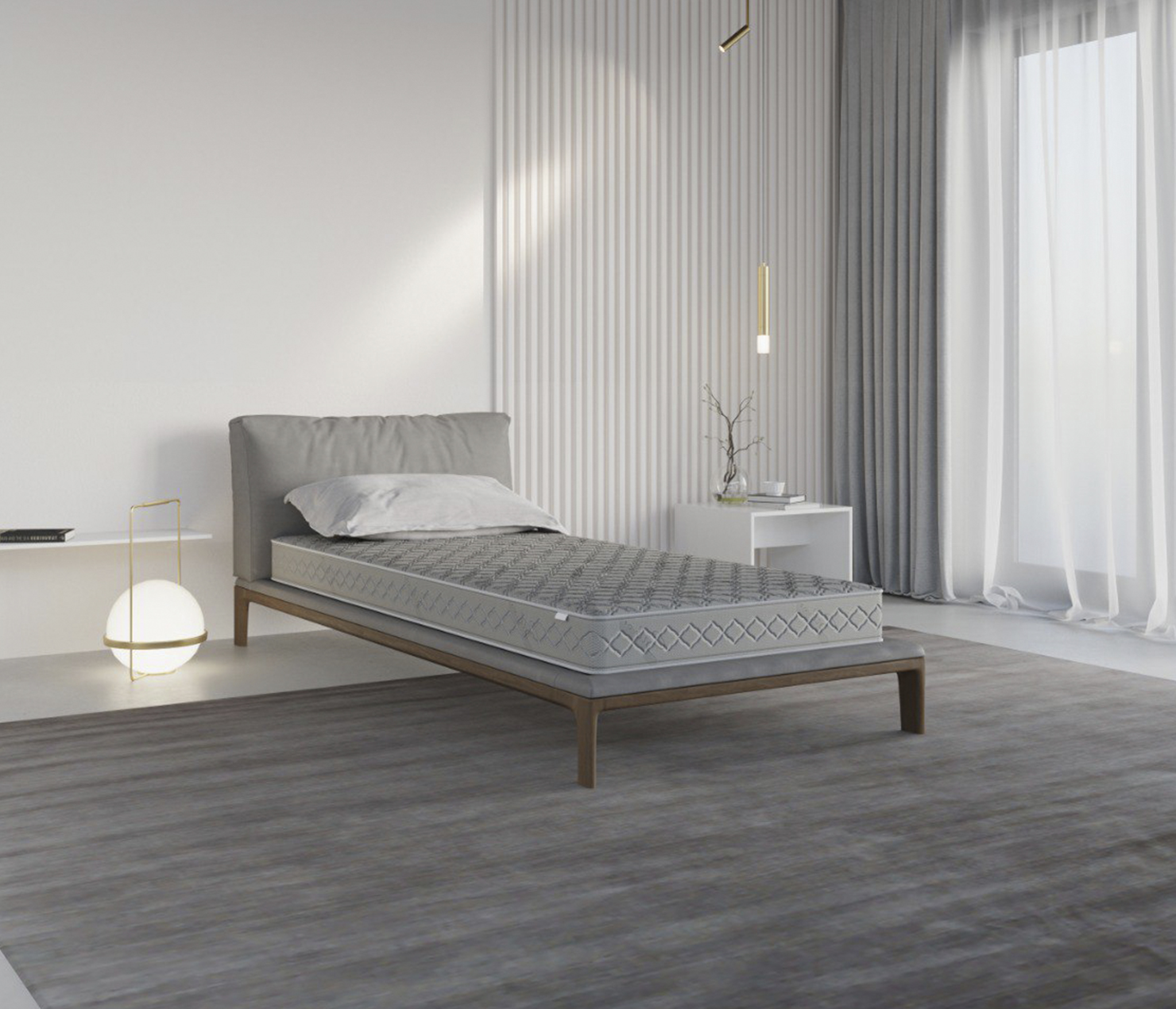Односпальный матрас дополнен чехлом, изготовленным из ткани синтетический жаккард, стеганный на синтепоне 200 г/м2. Это современное и очень прочное полотно.
