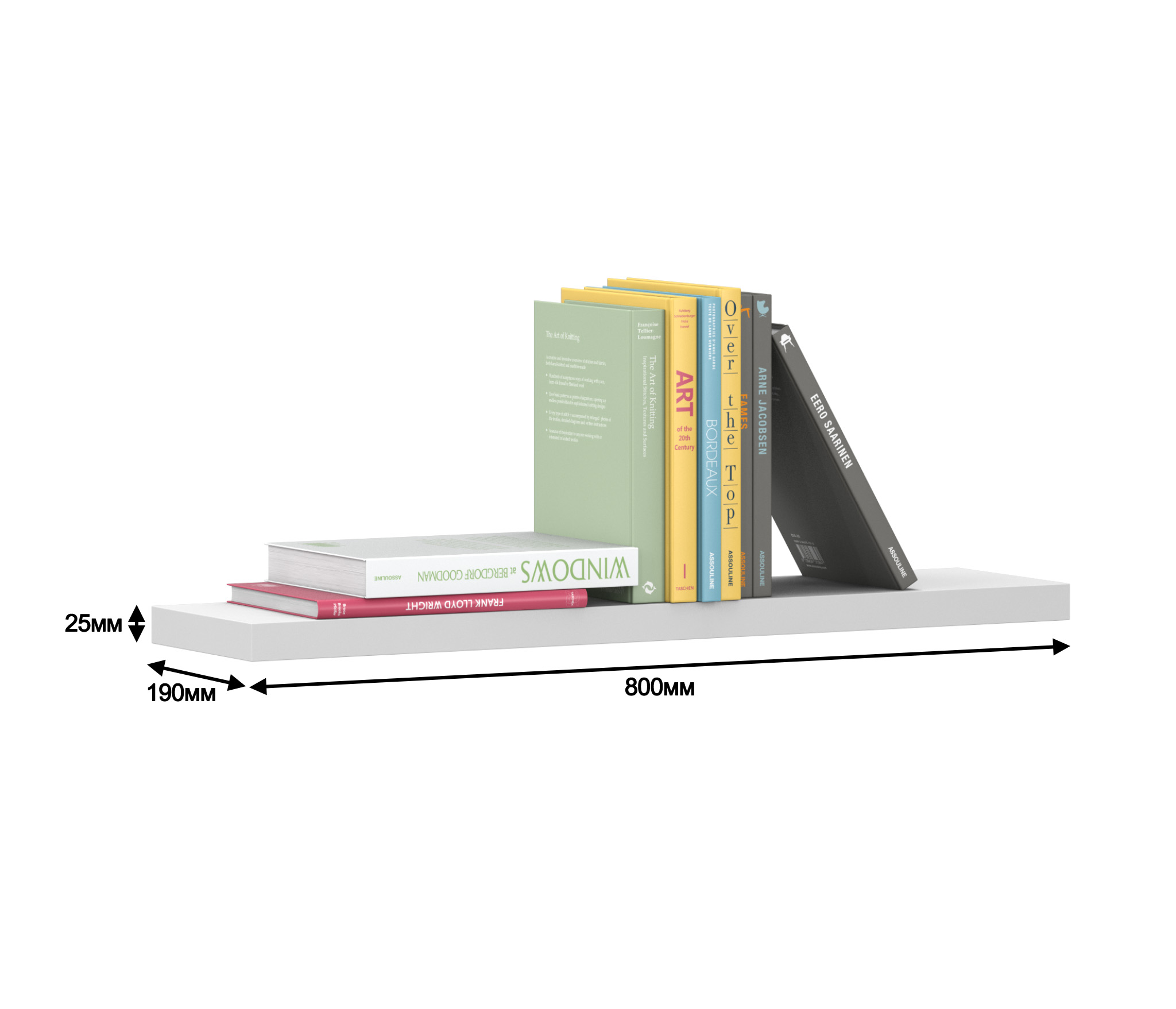 Габаритные размеры – ширина 80 см, высота 3 см и глубина 19 см. Выполнена полка из прочного современного КДСП. Полка крепится к стене при помощи дюбелей, которые входят в комплект.