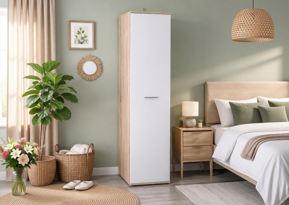 Шкаф 1 дверный Мамбо СБ-2677.Н (Дуб Сонома/Белый) Код 00000265698