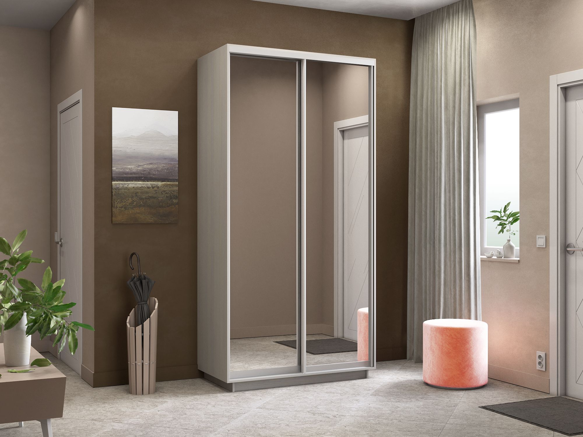 Минимальные размеры помещения для сборки и установки шкафа-купе серии ""Экспресс"": +10 см по высоте, +5 см по ширине.