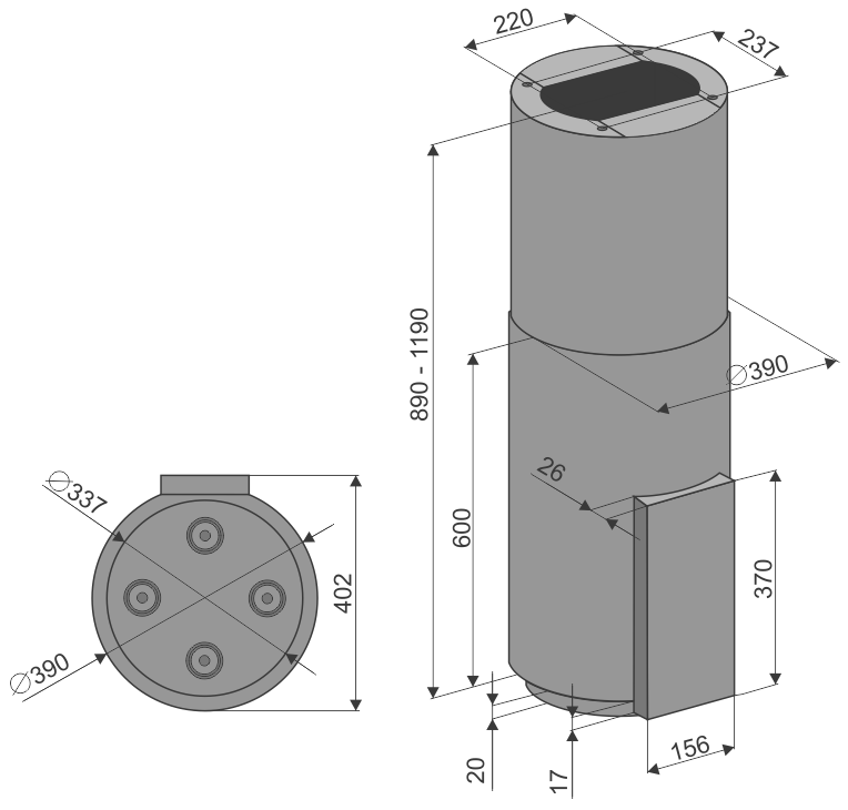 Диаметр выходного отверстия (ø мм): 150 переходник 120