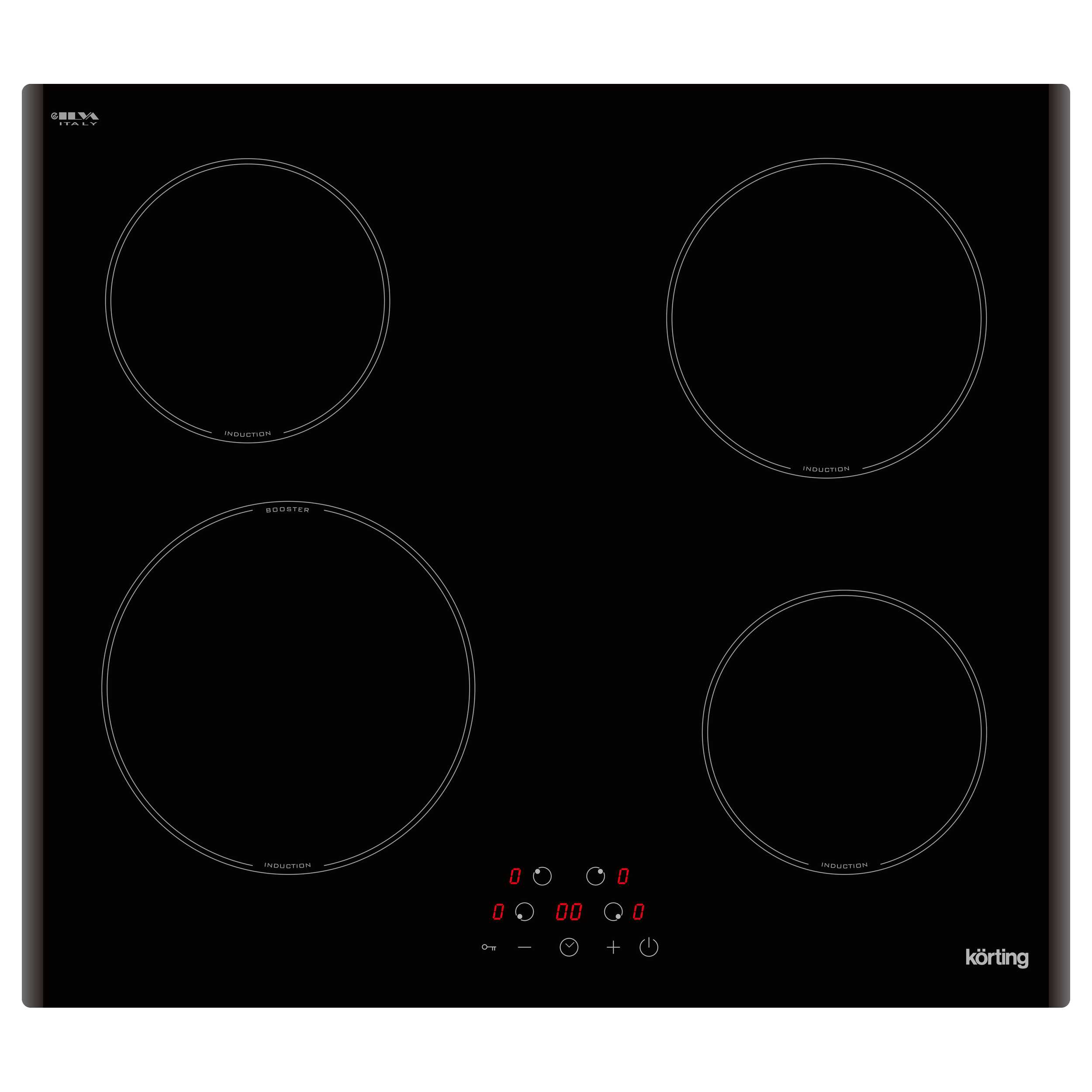 60 cм, сенсорное управление, 4 индукционные зоны приготовления, LED индикация для каждой зоны, Таймер, Функция ""Защита детей"", Автоматическое отключение, Индикация остаточного тепла, Booster для 1 зоны, Дизайн рамки: 2 скошенных края.