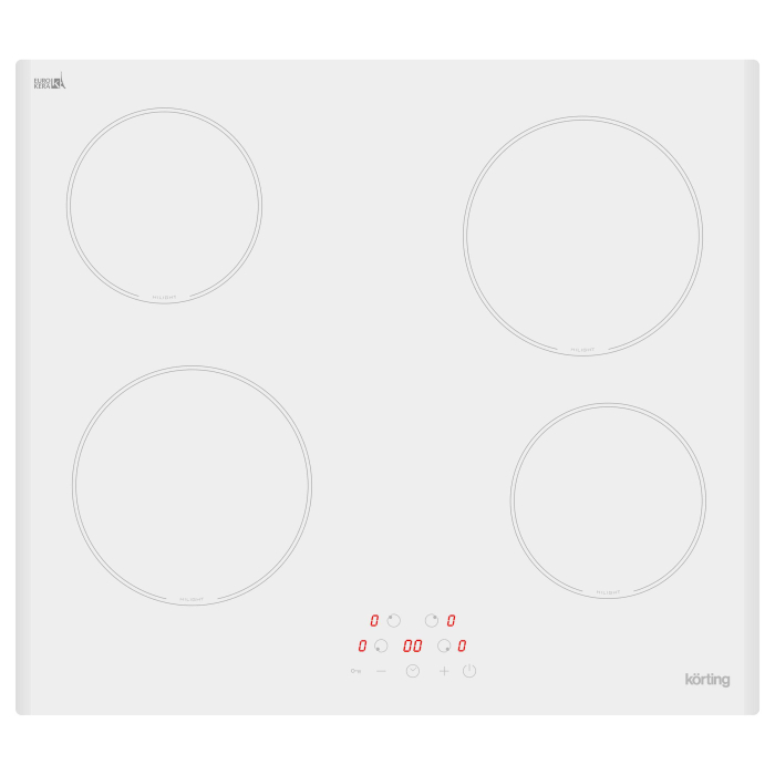 Стеклокерамика, ширина 60см, сенсорное управление, 4 зоны нагрева, таймер, LED индикация для каждой зоны, индикация остаточного тепла, автоматическое отключение, функция ""Защита детей"", цвет - ,белый, дизайн рамки - 2 скошенных края.