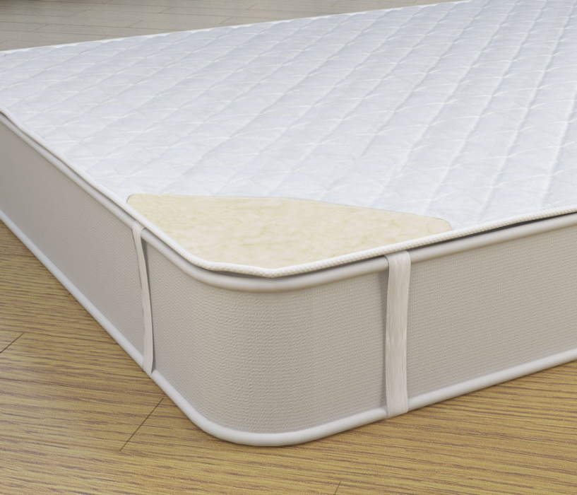 Чехол: жаккард хлопковый, стеганный на синтепоне, шерсть мериноса, 4 фиксирующие резинки по углам.