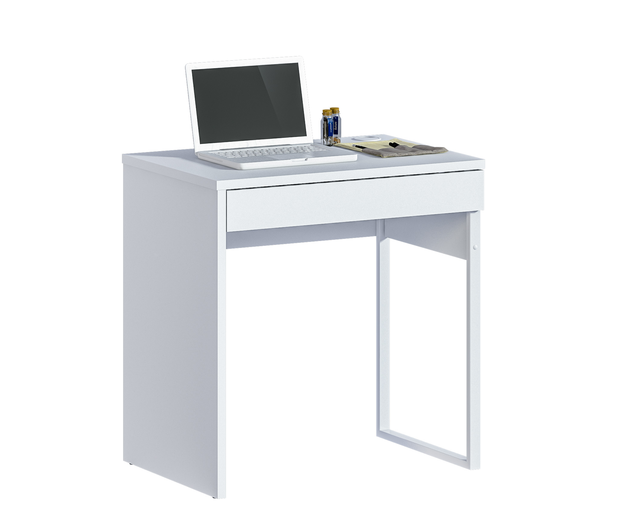 Стол изготовлен из высококачественного ЛДСП белого цвета, этот материал обеспечивает прочность и долговечность стола, а также делает его легким в уходе.