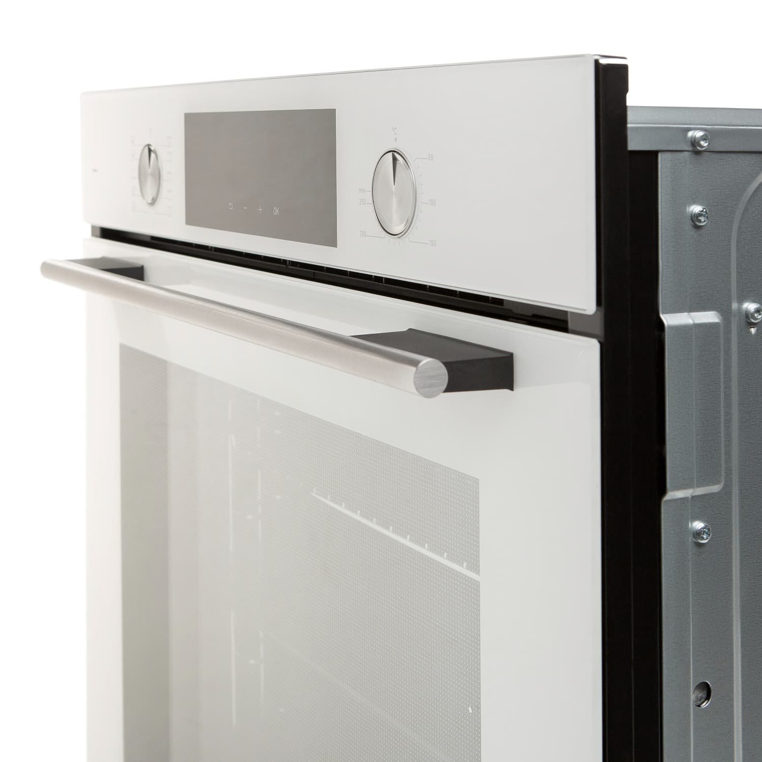 • Материал фасада: Узкая стеклянная панель управления + стеклянная дверца духовки из кристально белого стекло от немецкого производителя Schott Ceran
