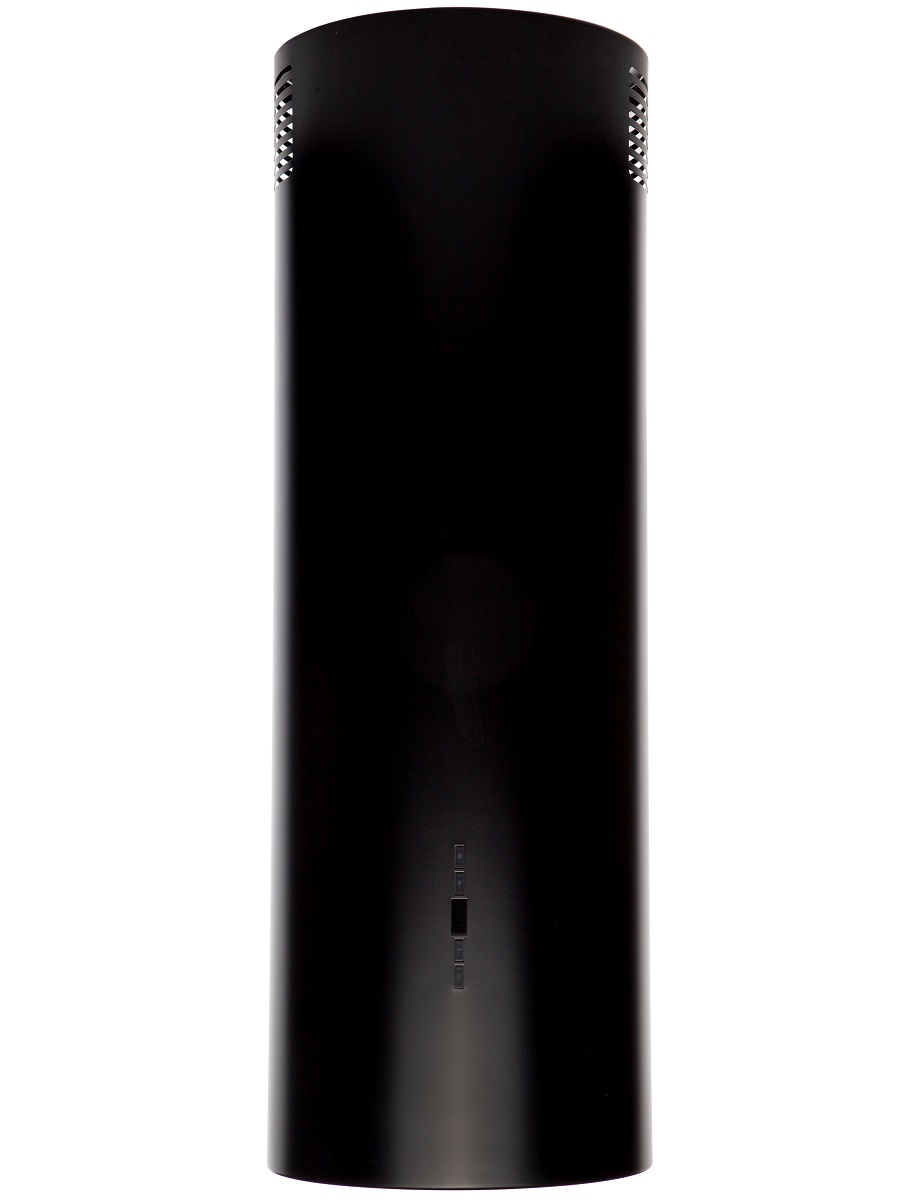 + Вытяжка выполнена в форме цилиндра. Геометрические формы повсеместно используется в современных дизайнерских проектах, они ассоциируются с простотой и лаконичностью, привносят в помещение гармонию и стиль. Стильное сочетание стали и блеска закаленного стекла создают ощущение легкости прочной конструкции. Декоративный стеклянный люк скрывает алюминиевый, жироулавливающий фильтр, придавая завершенность композиции